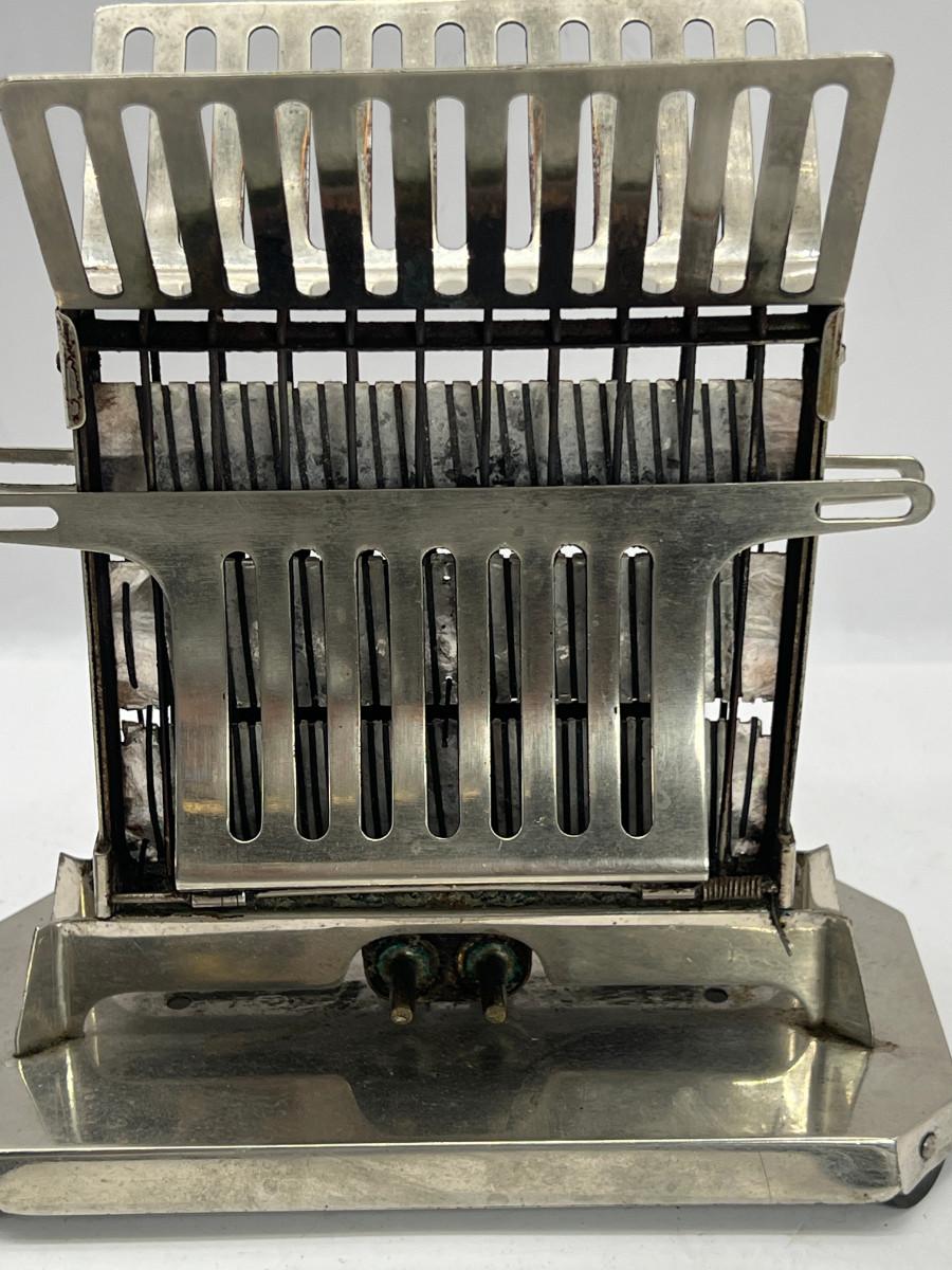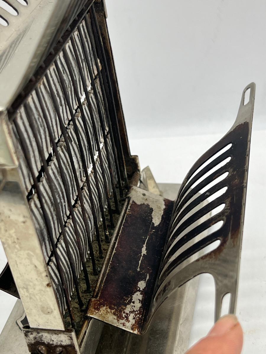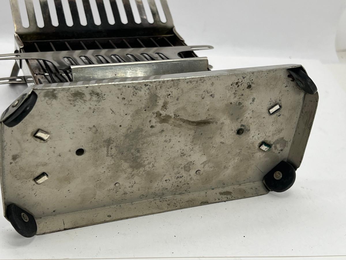 Chrome 2 slice with "more rare" top rack, cord Unit is being sold as a "non-working" vintage electronic device that should be gone over by a qualified technician prior to use. May have rust, corrosion or other flaws see pictures.