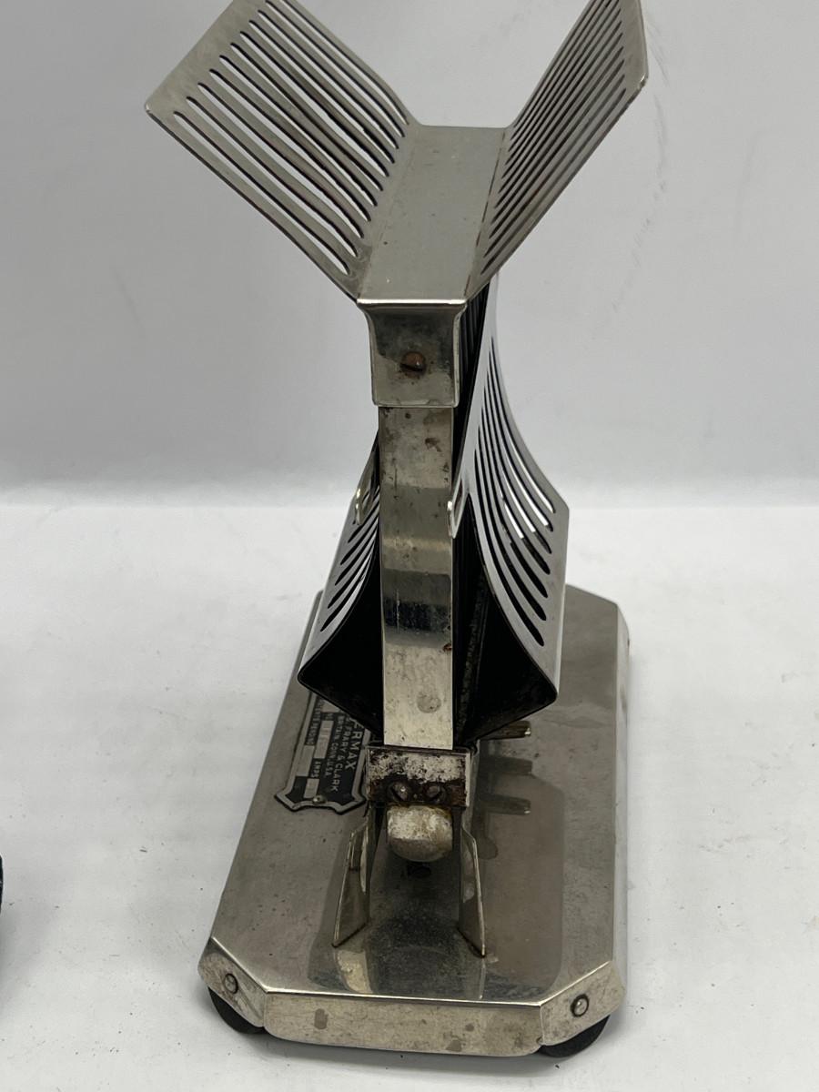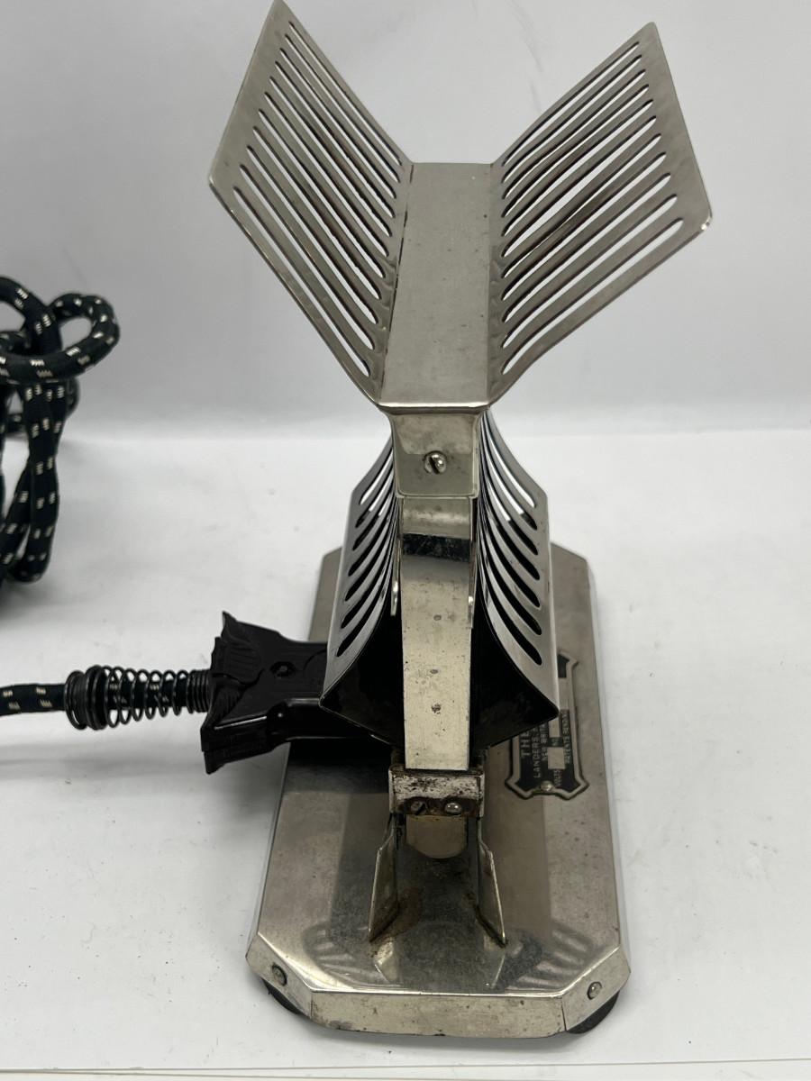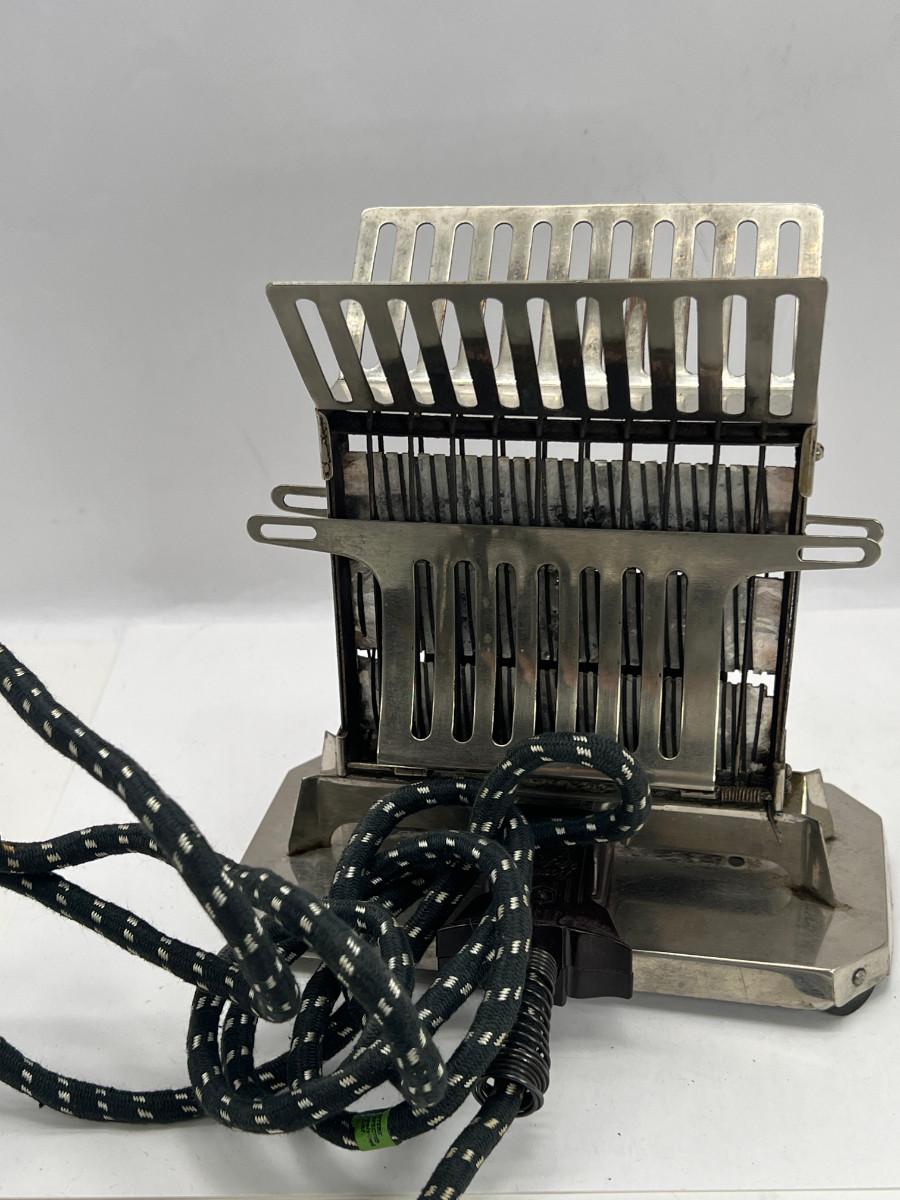 Chrome 2 slice with "more rare" top rack, cord Unit is being sold as a "non-working" vintage electronic device that should be gone over by a qualified technician prior to use. May have rust, corrosion or other flaws see pictures.