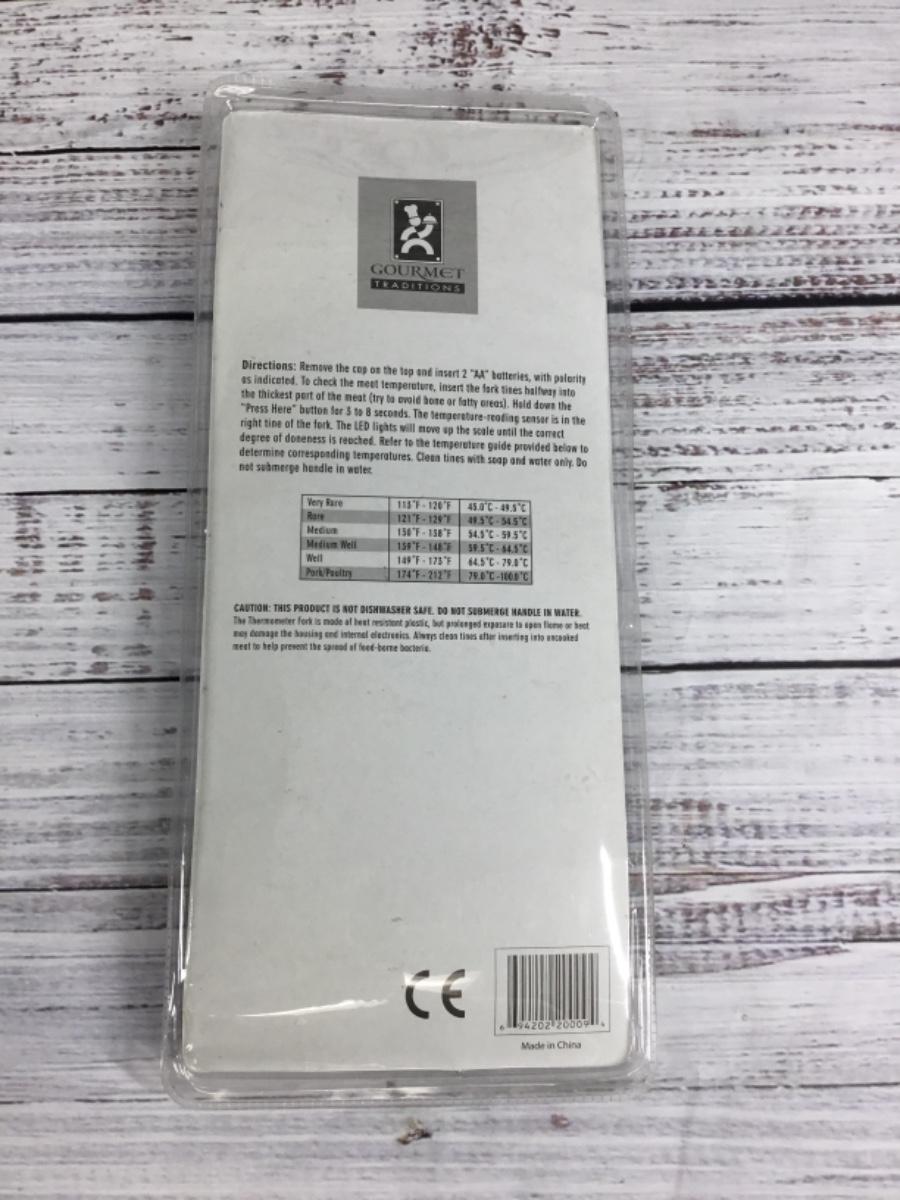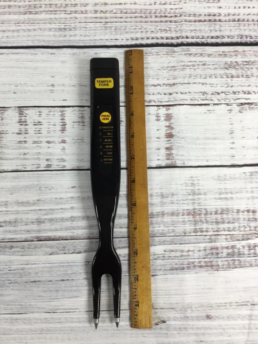 Pot Holders are in good condition with tags. Batteries are not included with the Temper Fork. Temper Fork is approximately 12”. Both products are made in China.