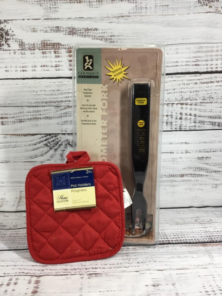 Thermometer Fork and 2 pack of Pot Holders