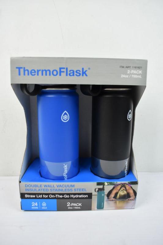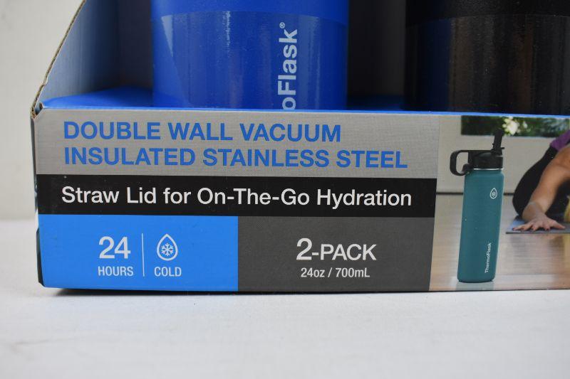 Thermos Flask Double Wall Vacuum Insulated Stainless Steel Hydration: 2 Pack 24oz Blue & Black - New