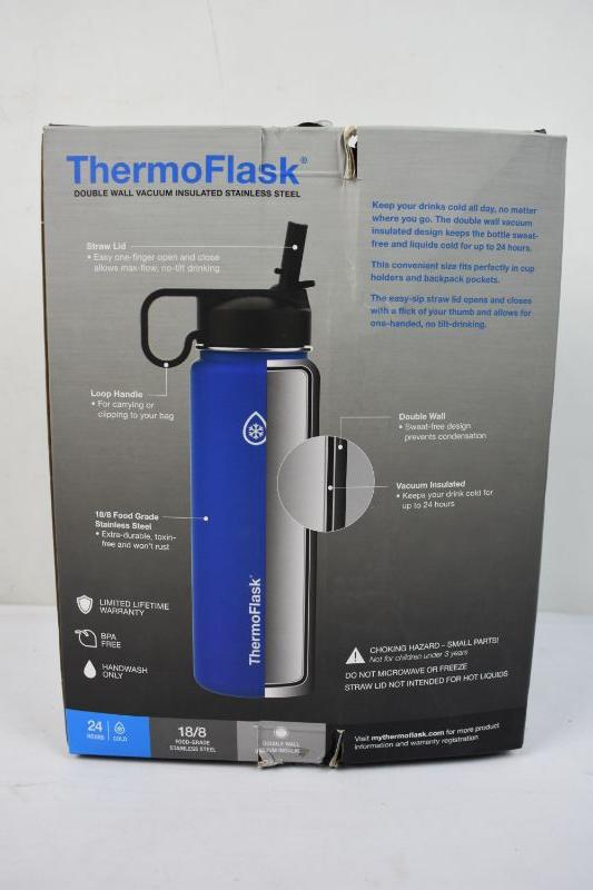 Thermos Flask Double Wall Vacuum: 2 Pack 24oz Blue & Black - New