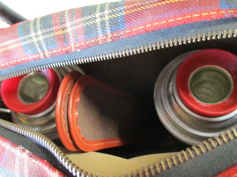 Lot 4 - Thermos Picnic Set With Red Plaid Bag