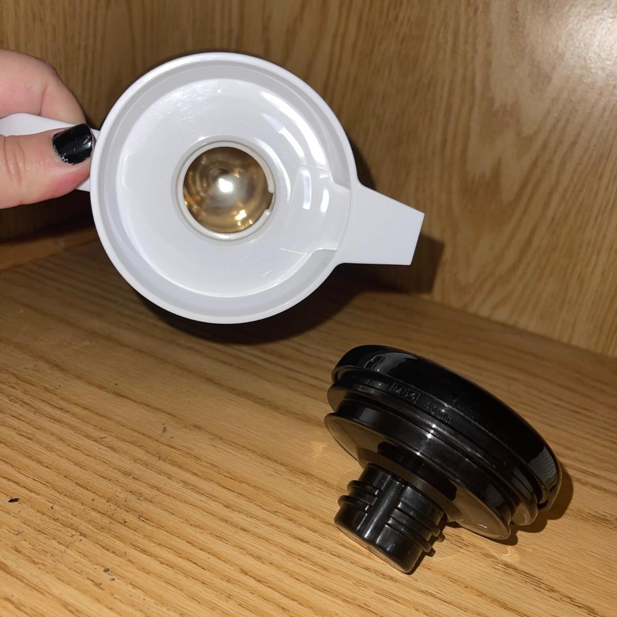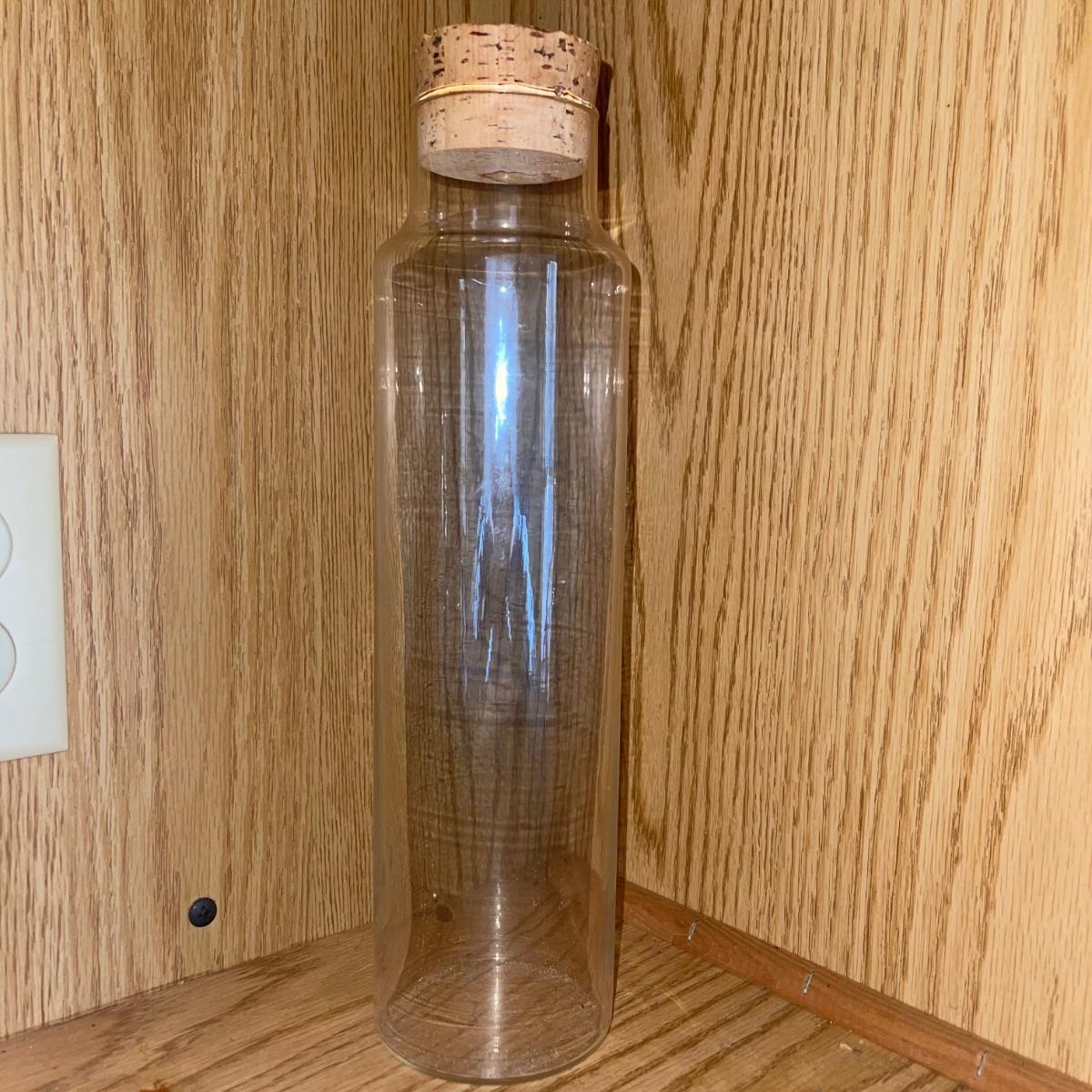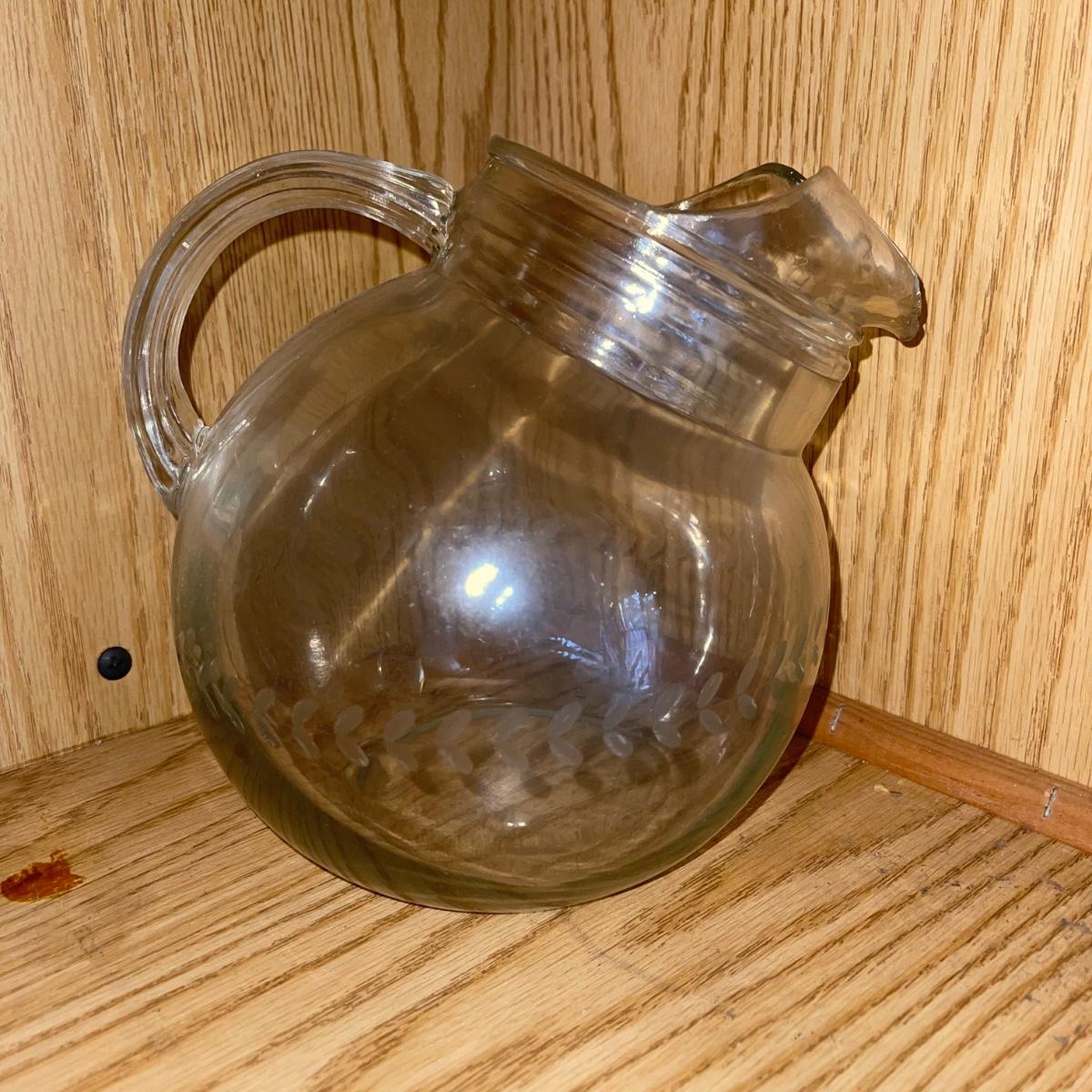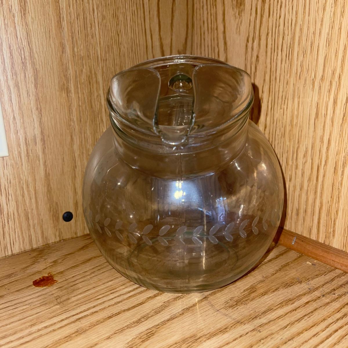 In this lot are two thermos pitchers one black (10” tall) and one white (11” tall). There is also corked cylinder glass bottle (13.5” tall), a glass oil bottle, and a round glass pitcher. There are Eight square plastic hummingbird plates (5.5”x 5”), three chip clips, a plastic yellow plate and a small wooden cutting board.
