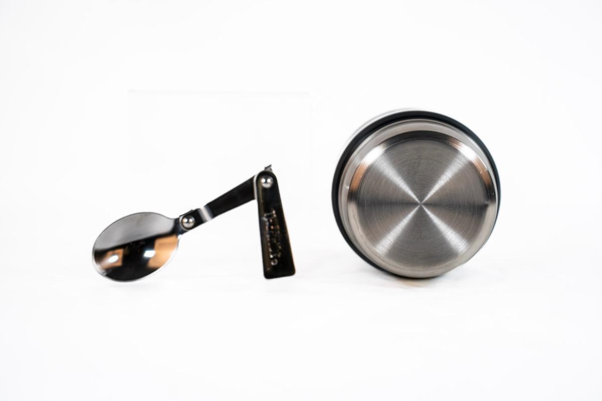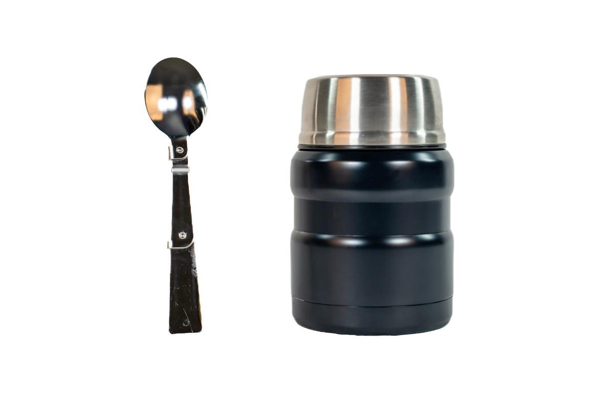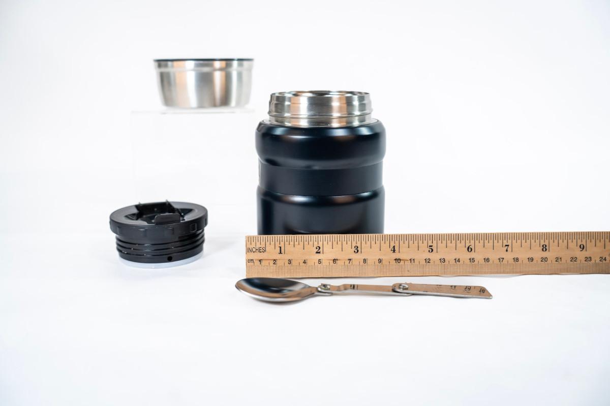 It features Thermos vacuum technology, which virtually eliminates temperature change within the container. The jar keeps contents hot for up to 9 hours and cold up to 14 hours. this model comes with a folding stainless steel spoon that stores in lid.