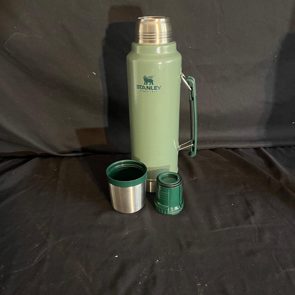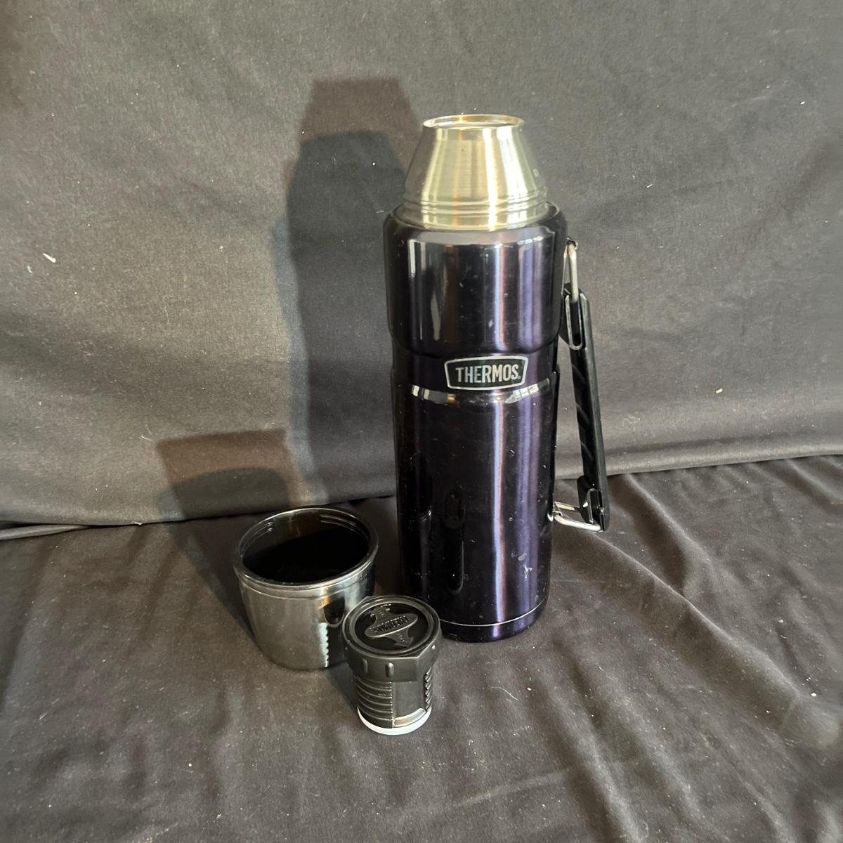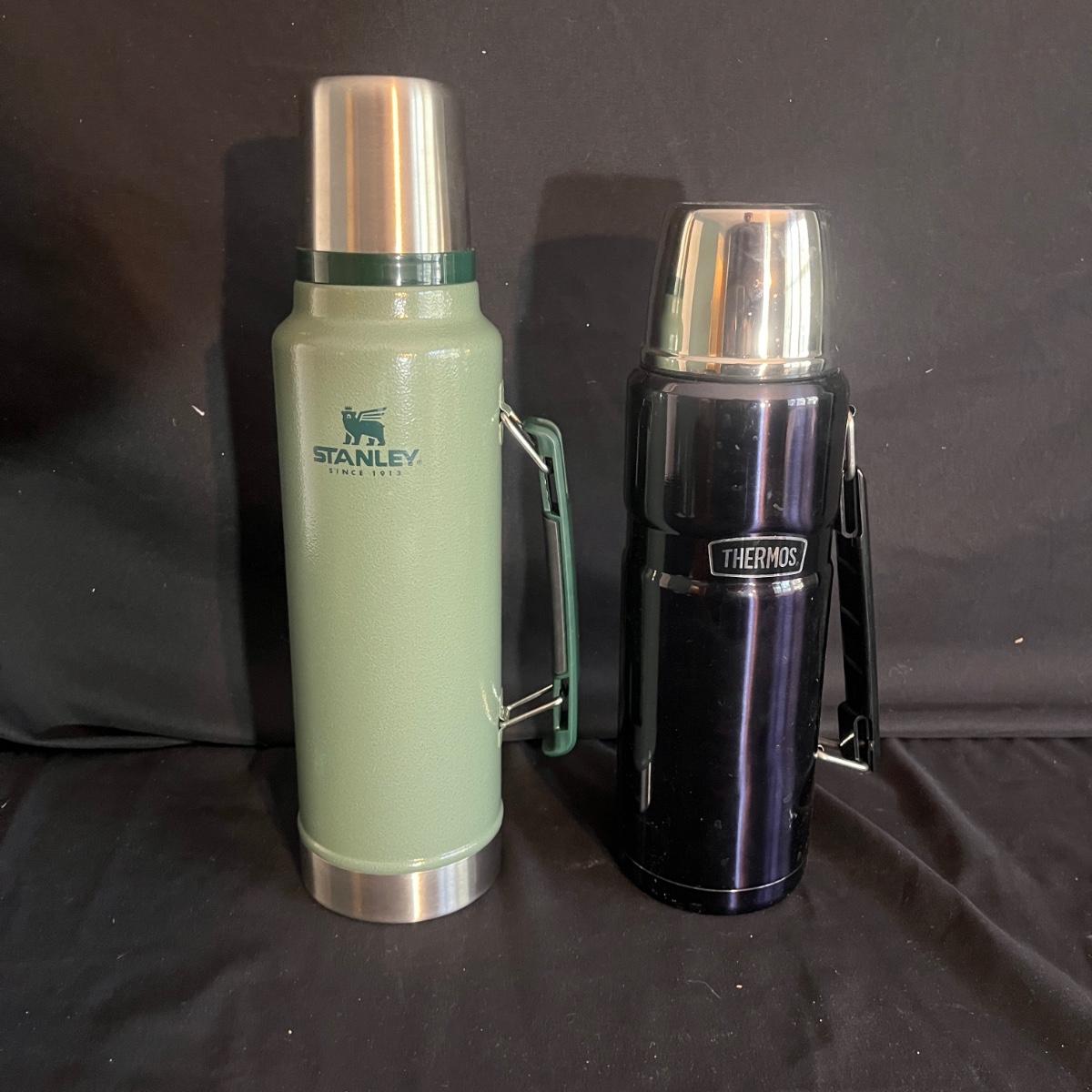Lot includes a Stanley heavy duty 1.5 qt. thermos and a 40 ounce Thermos metal thermos.