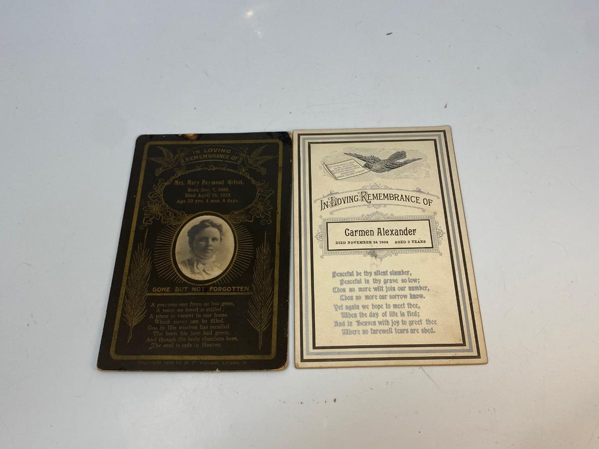 Pair of Antique Victorian Funeral Death Remembrance Cards. From early 1900s.