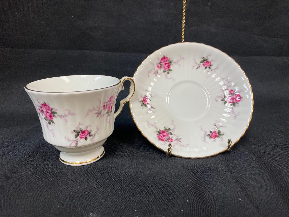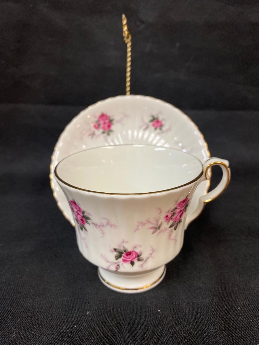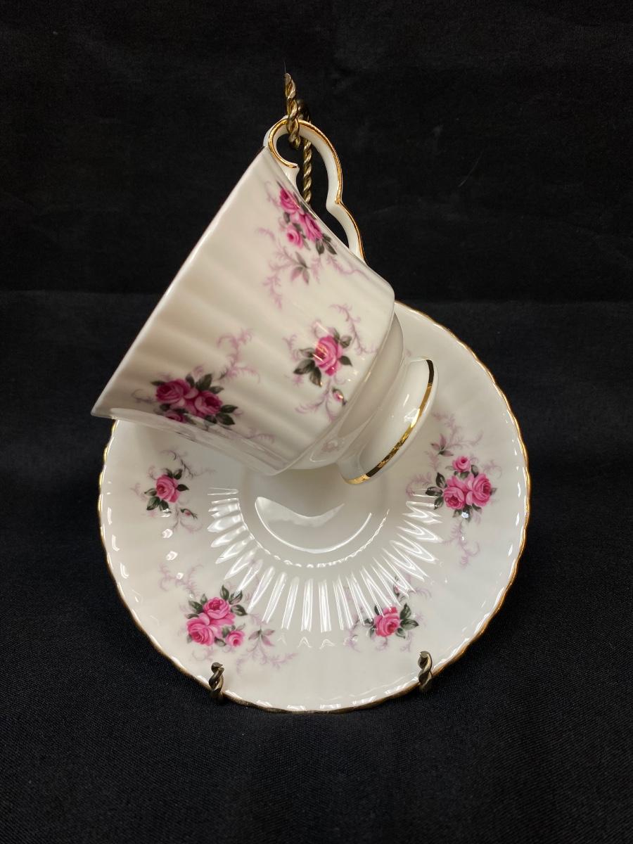 Vintage Princess House Exclusive Hammersley Bone China Pink Rose Ribbed Teacup and Saucer