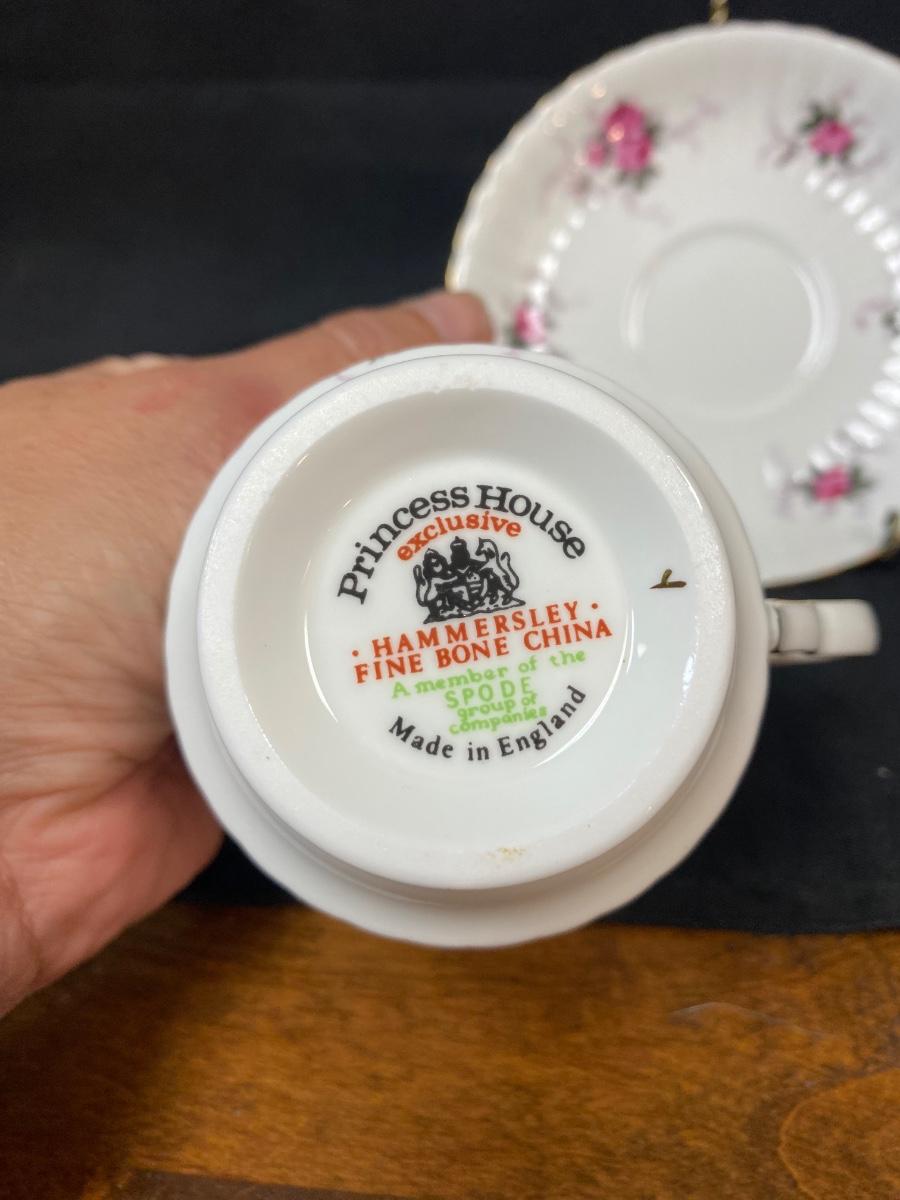 Vintage Princess House Exclusive Hammersley Bone China Pink Rose Ribbed Teacup and Saucer. In good condition.
