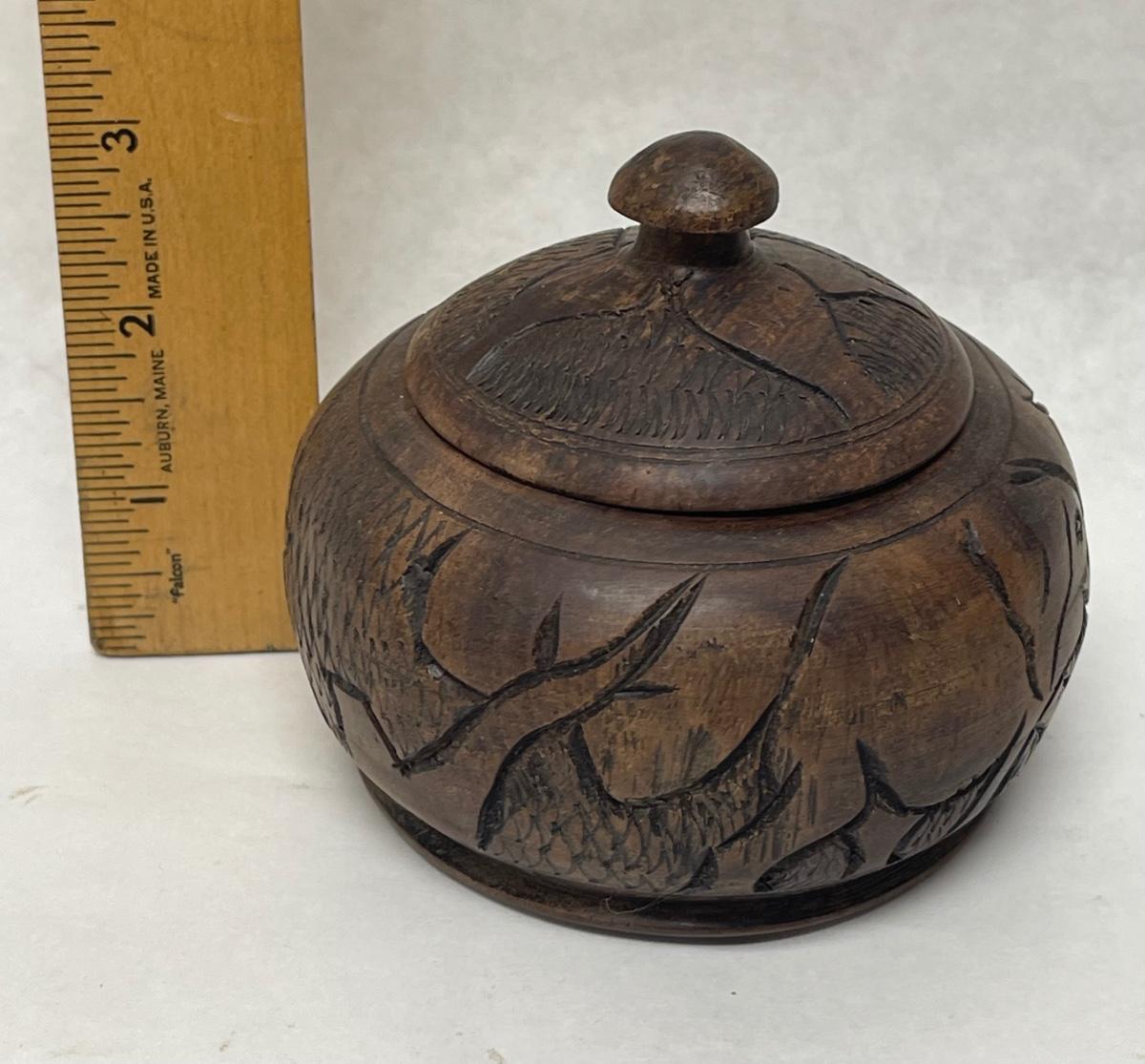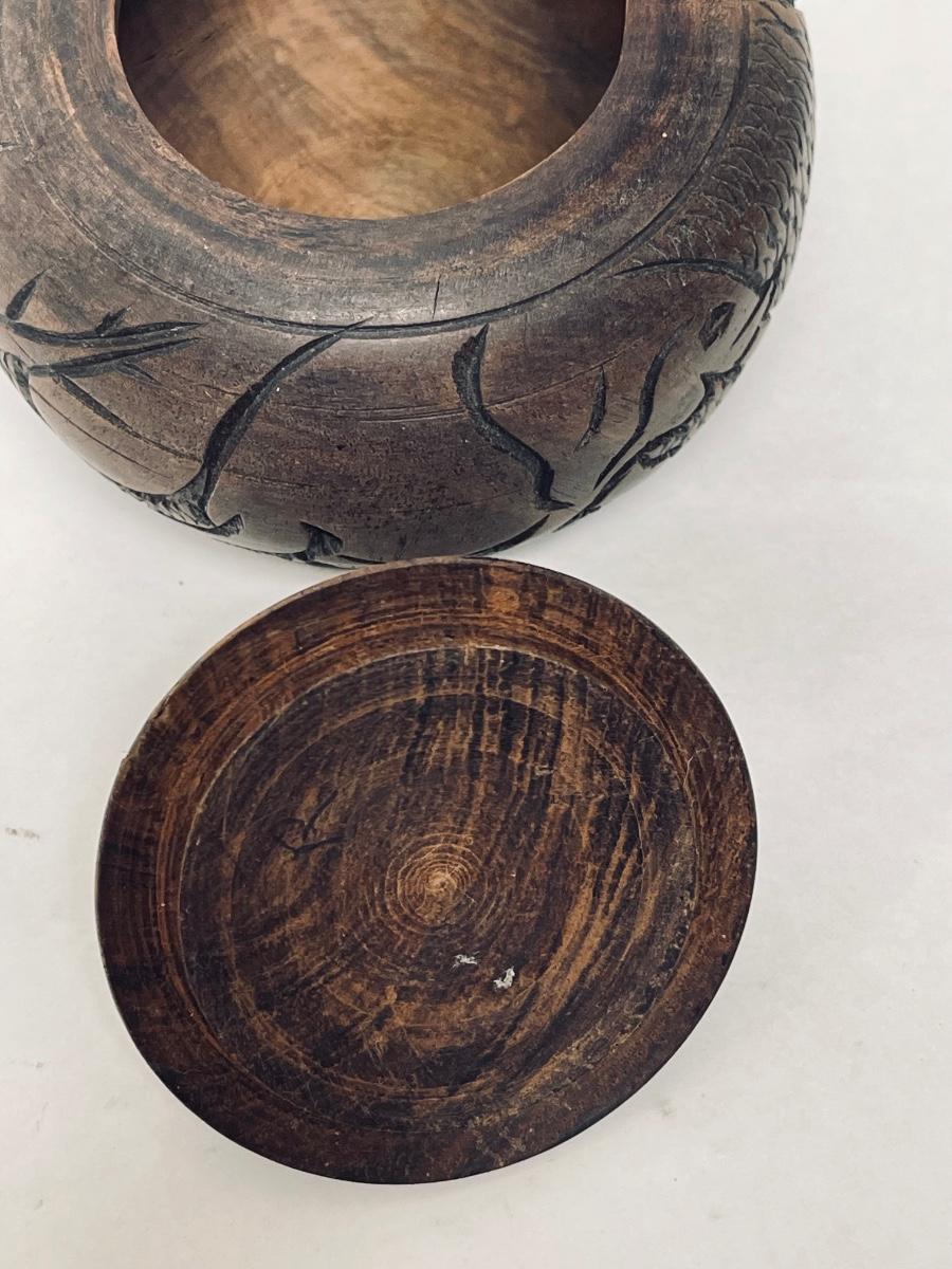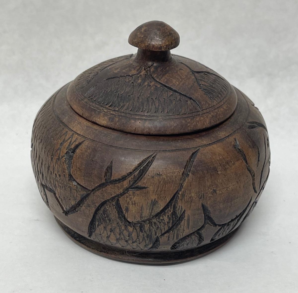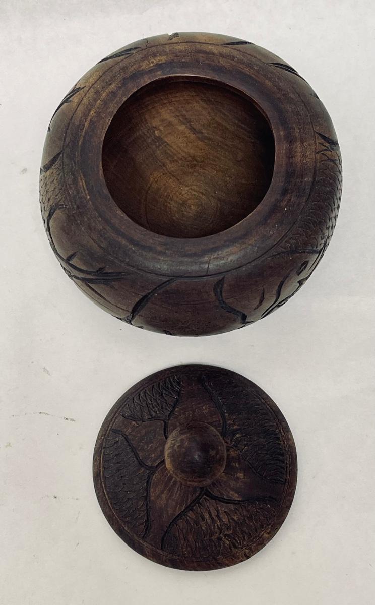 Vintage 1970's Carved Wooden Decorative Container with Lid