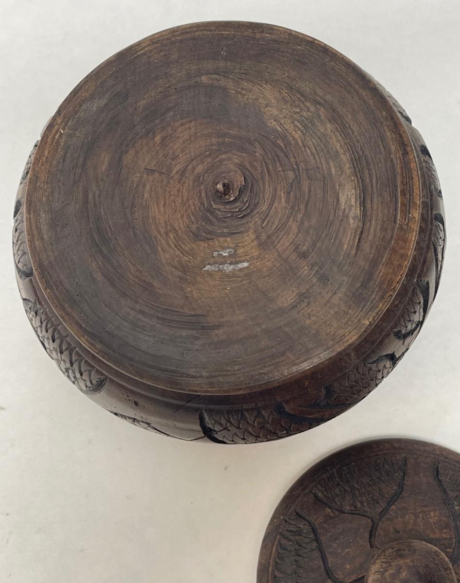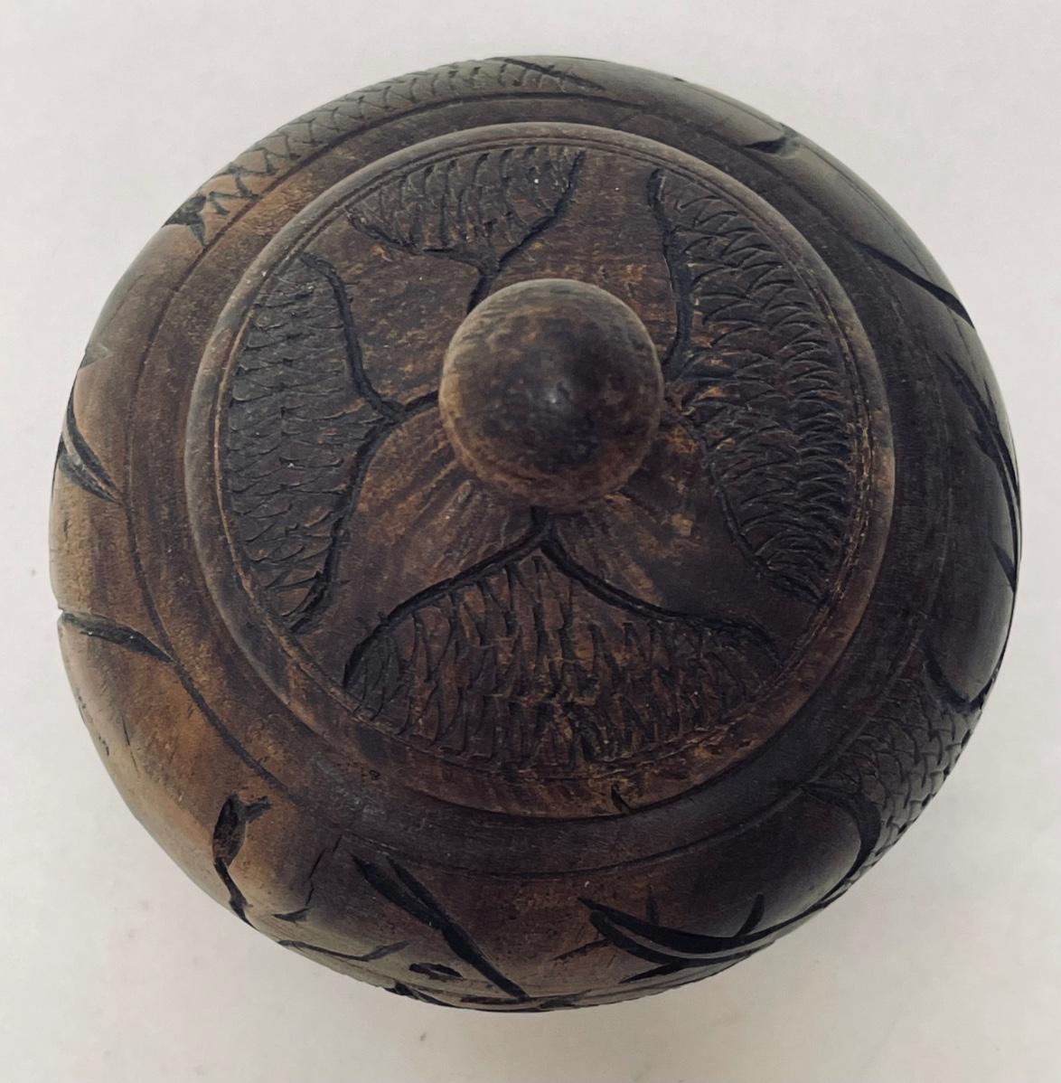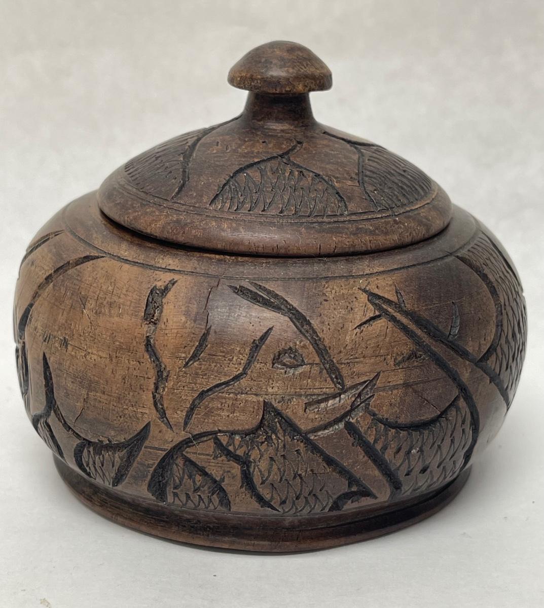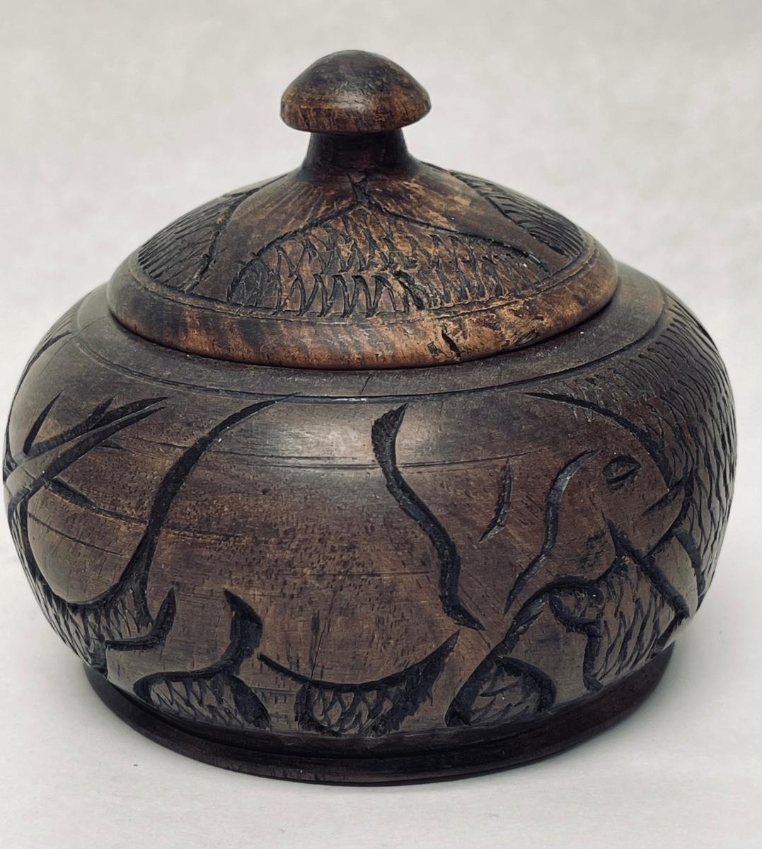Vintage 1970's Carved Wooden Decorative Container with Lid