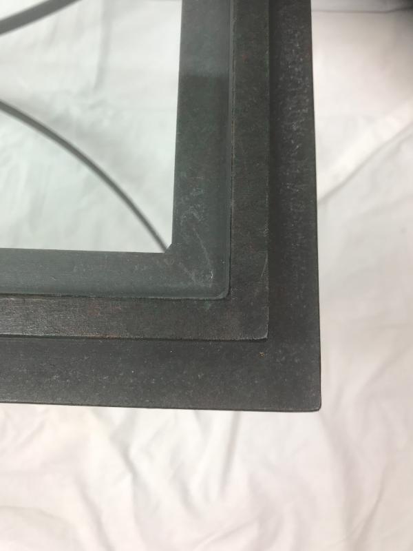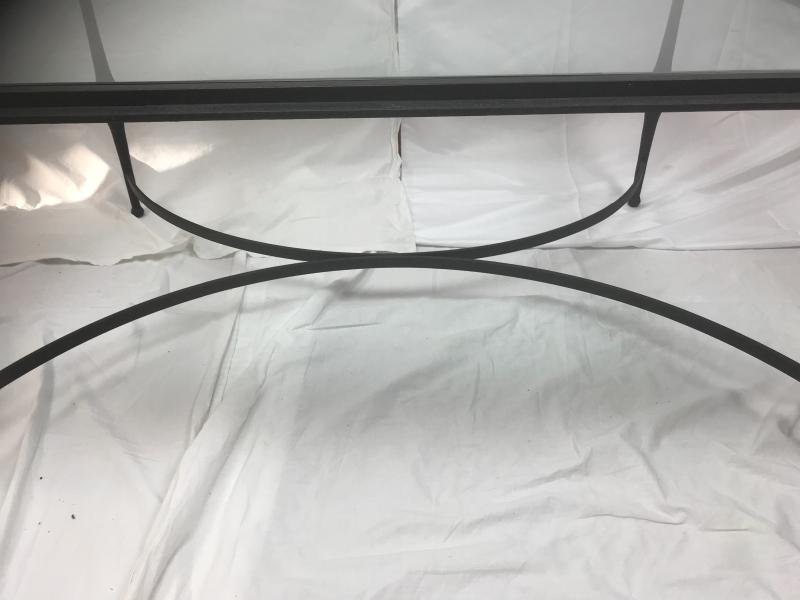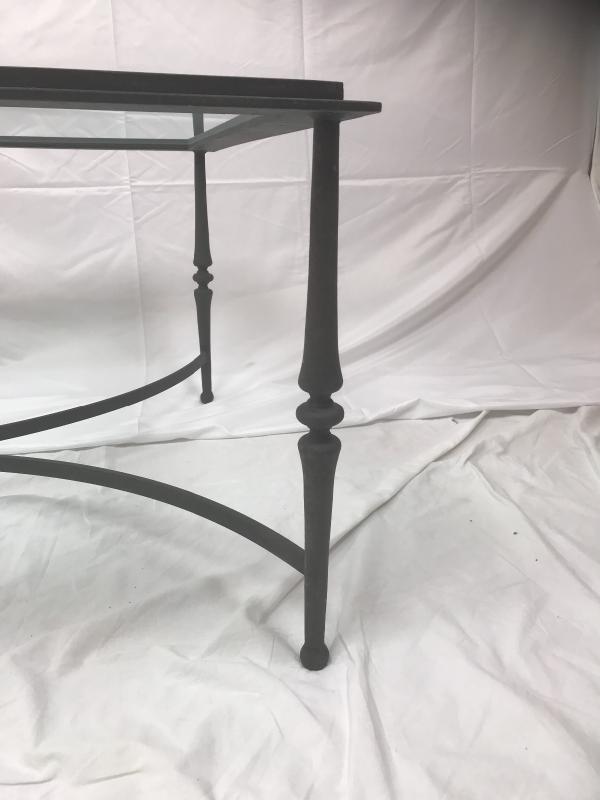 This piece is a beautiful glass top wrought iron table. Good Quality and VERY HEAVY.