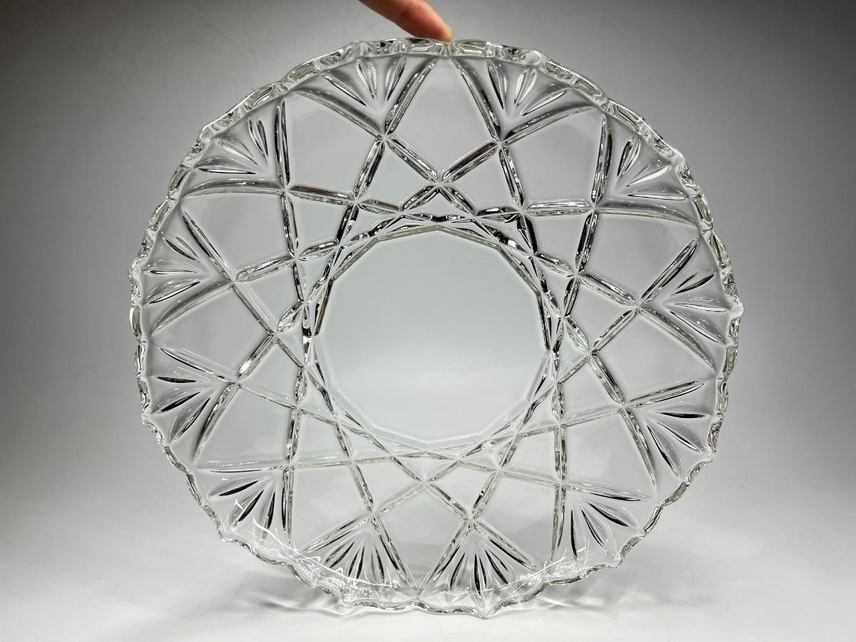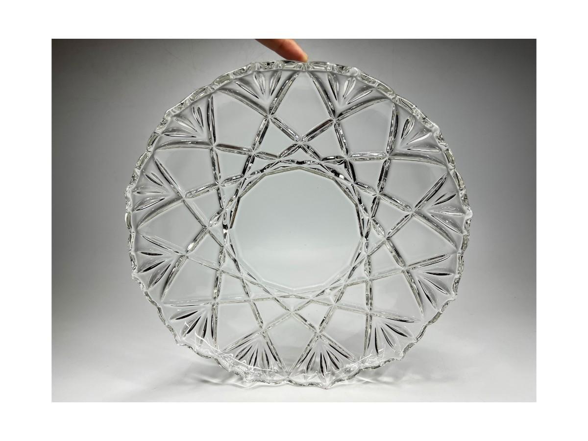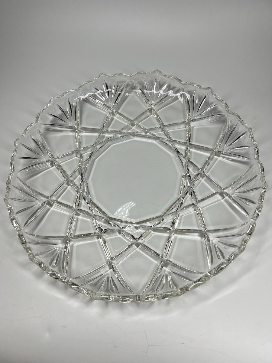 Thick Crystal Glass Geometric Design Serving Dish Display Platter