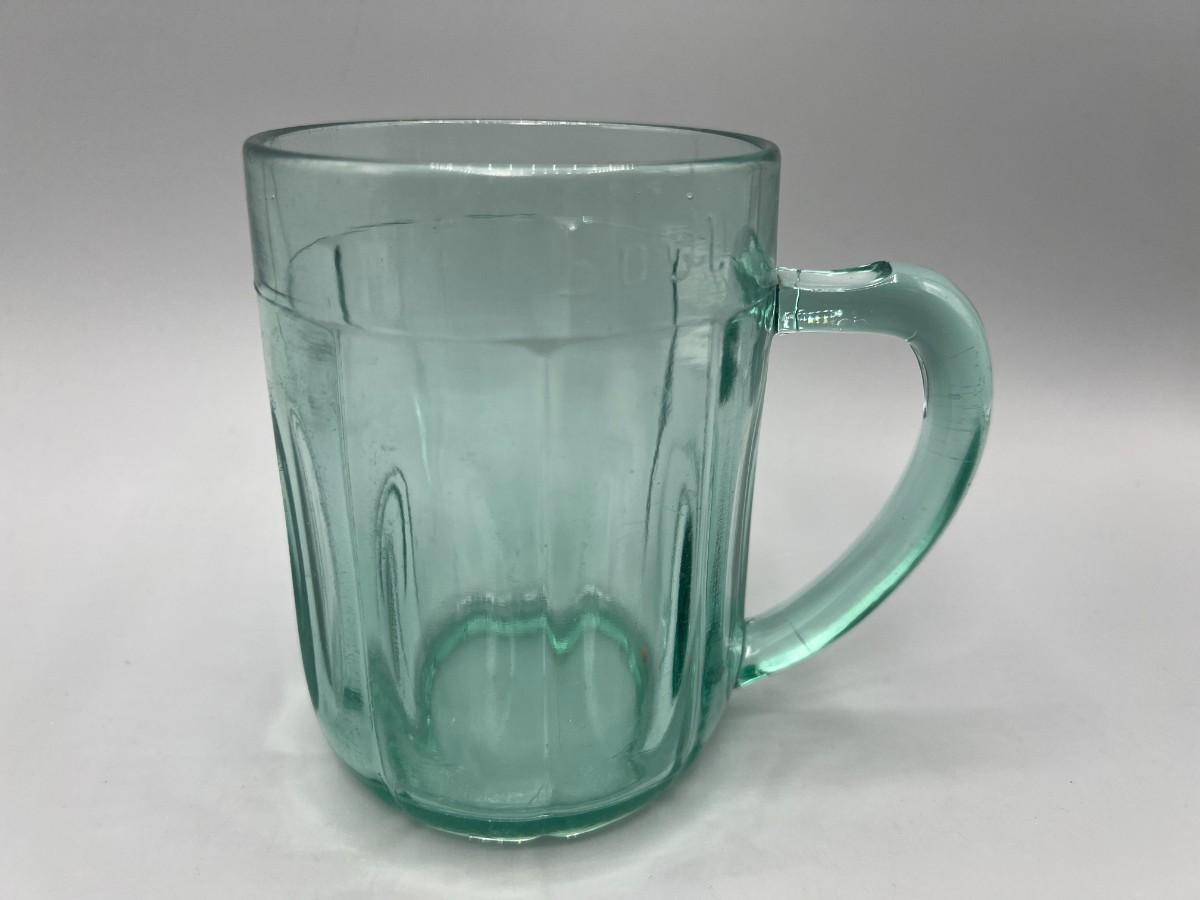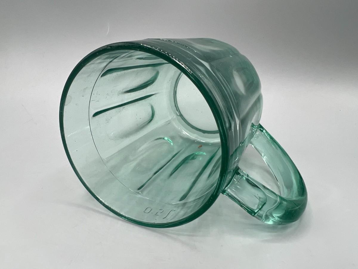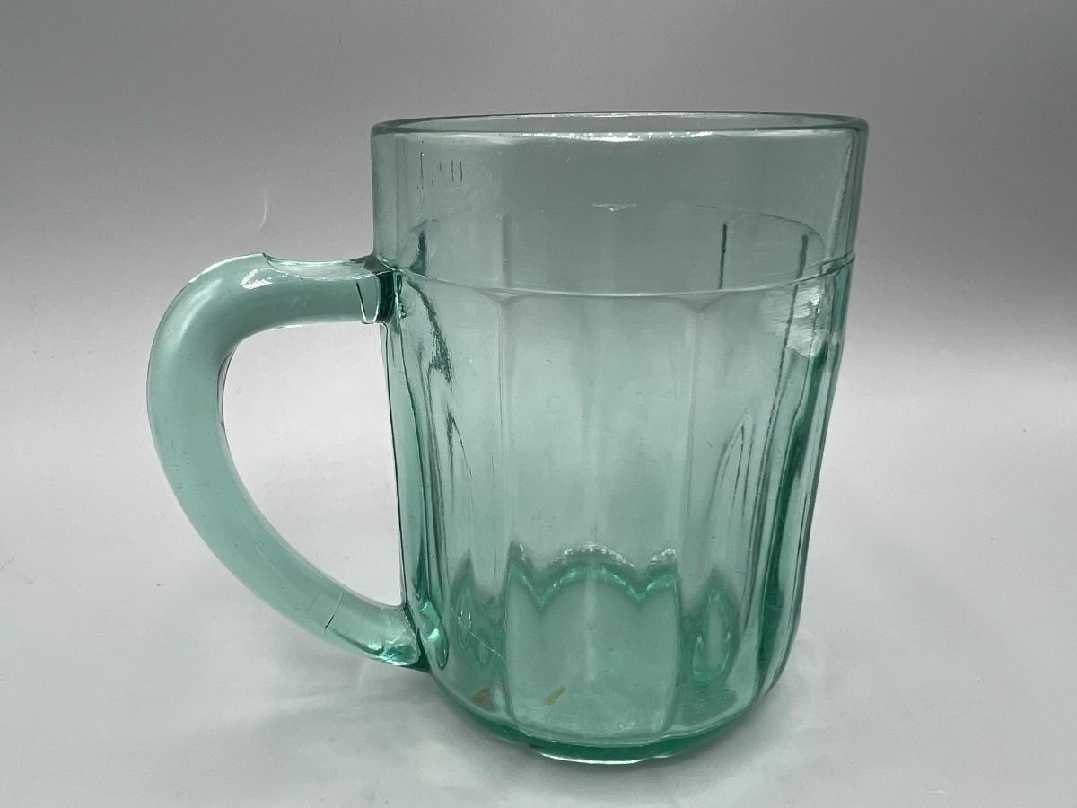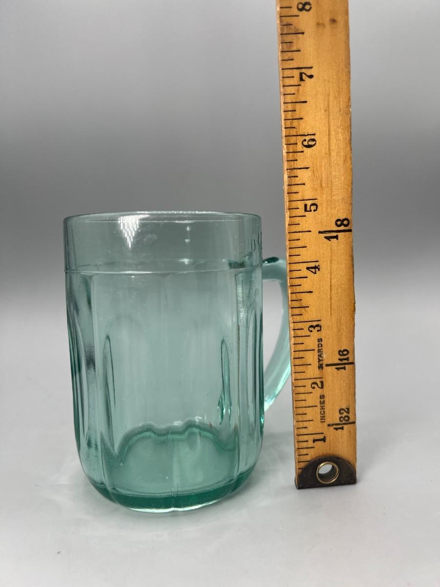 Thick Glass Green Drinking Mug, there are no significant cracks or chips to the mug and is in good useable condition. Check pictures for more details and for sizing.