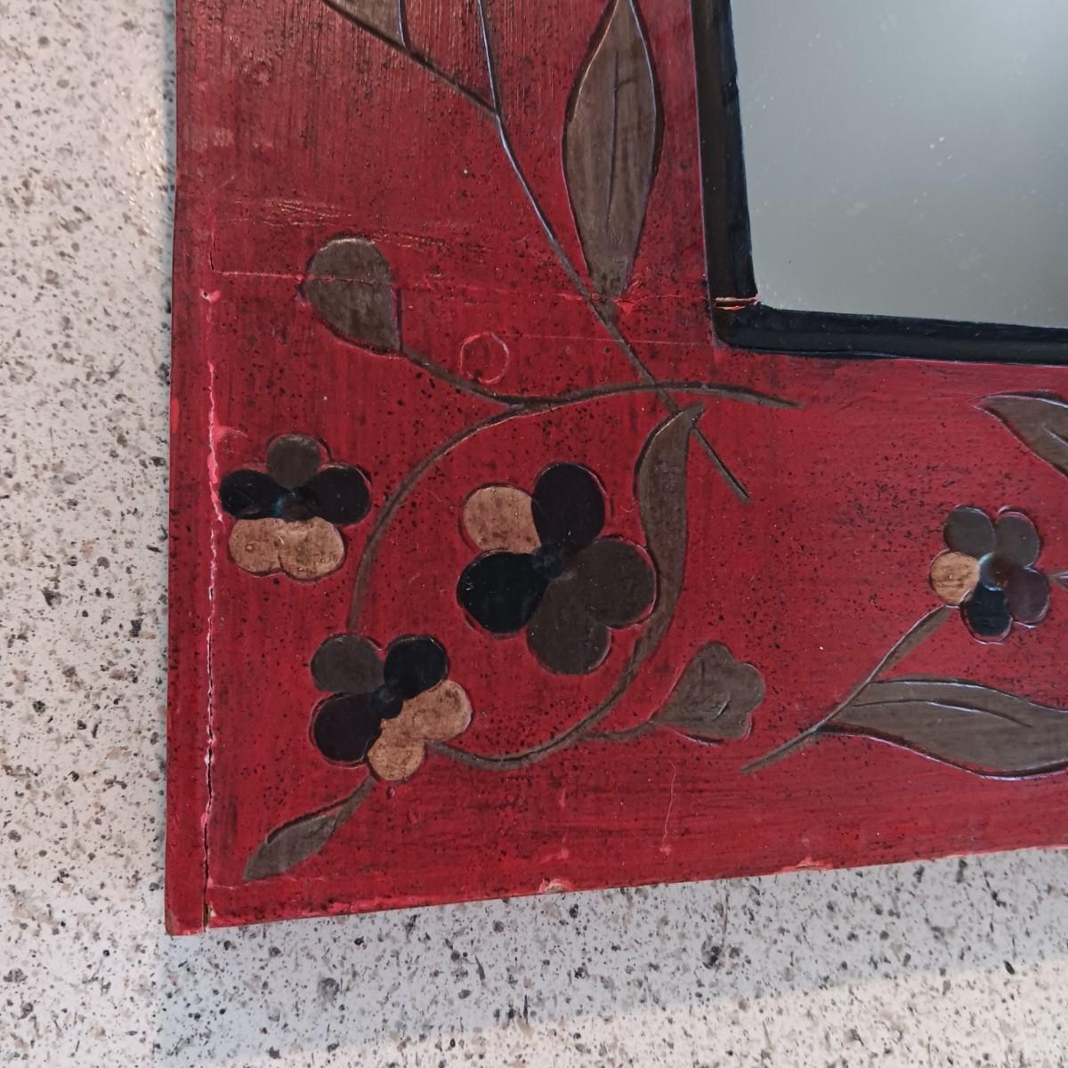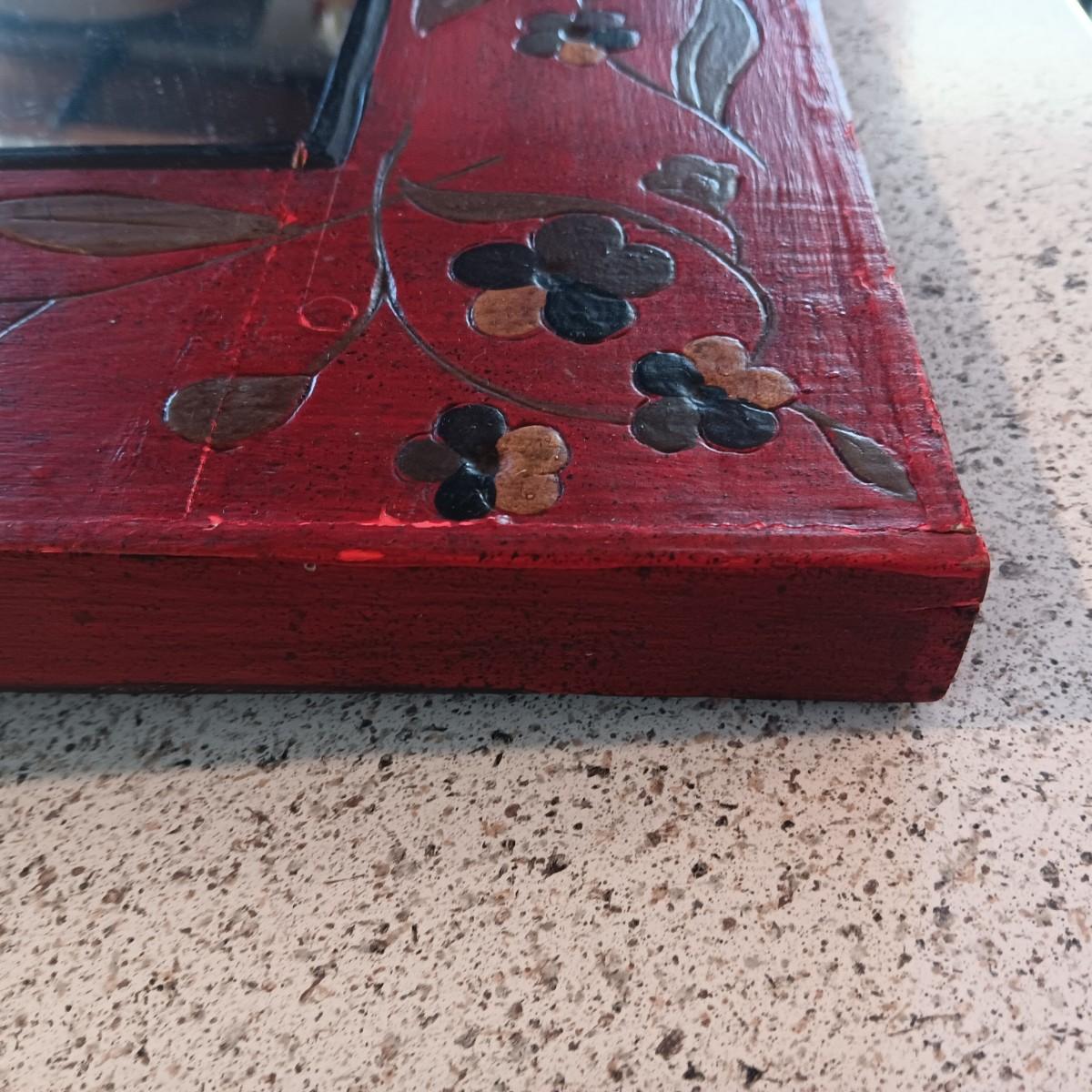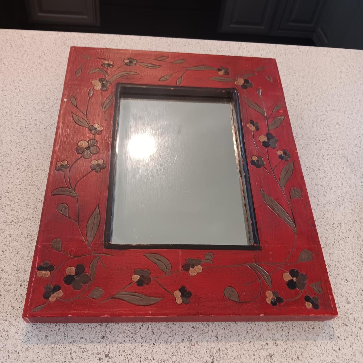 THICK, HAND PAINTED, WOODEN FRAMED WALL MIRROR