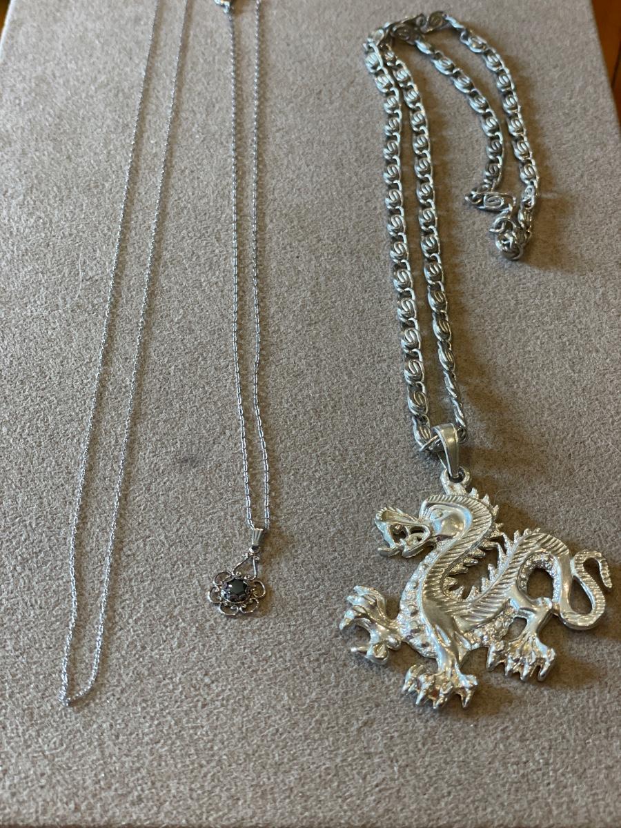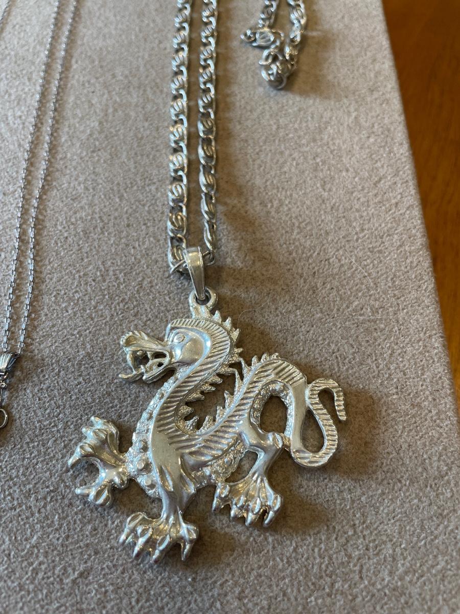 Thin 10k chain, small pendant & large Chinese dragon pendant