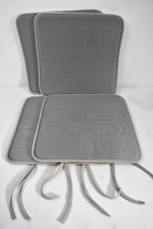 Thin Gray Chair Cushions, Gray, Quantity 4 - New
