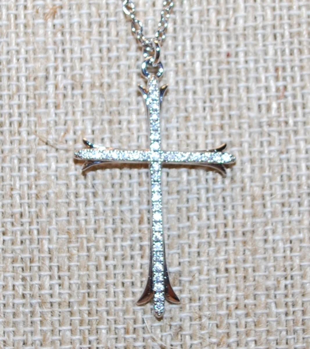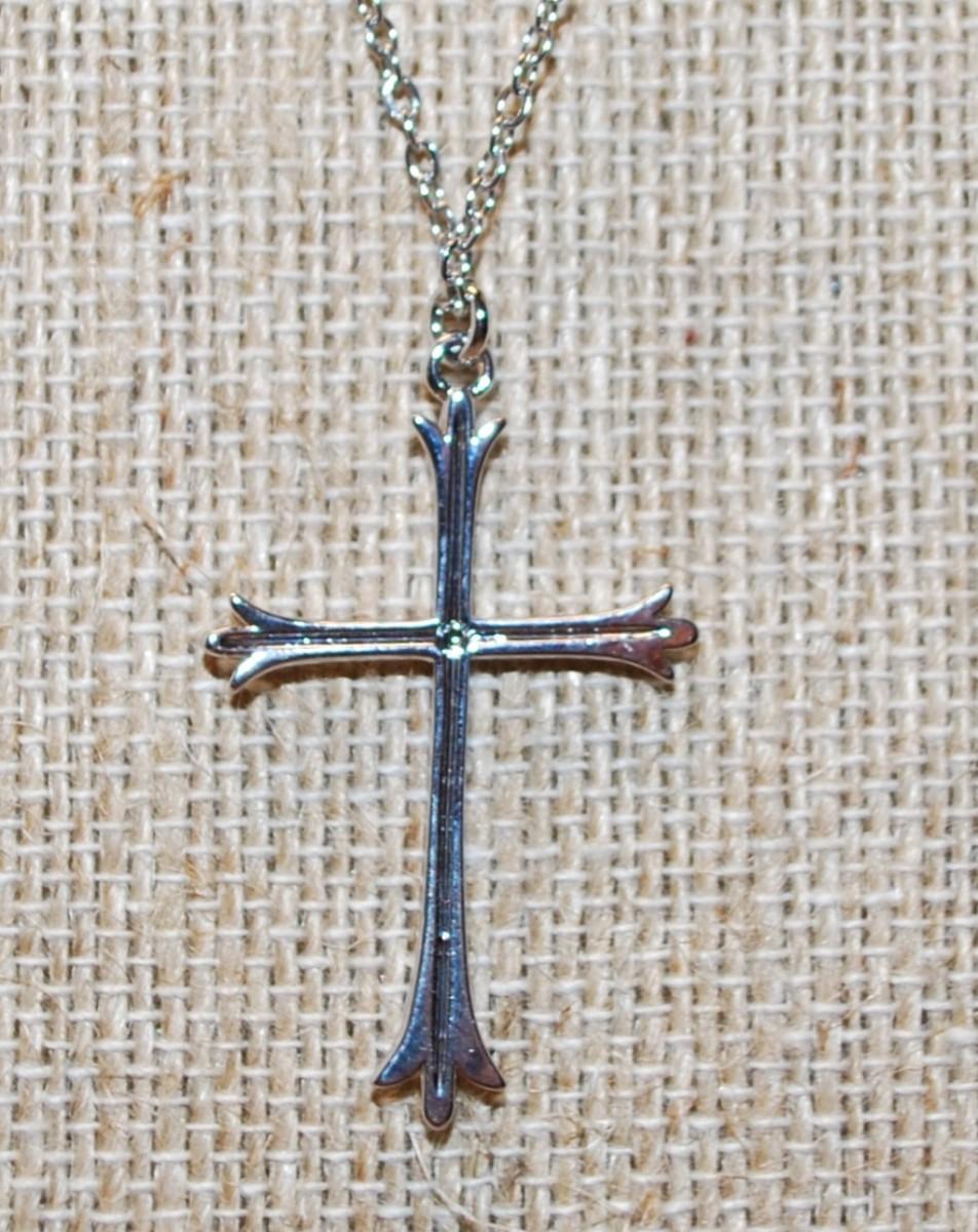 Thin Straight Line Cross PENDANT (1½" x 1") on a Silver Tone Necklace Chain 17" L