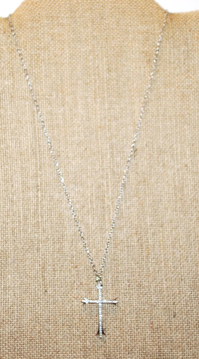 Thin Straight Line Cross PENDANT (1½" x 1") on a Silver Tone Necklace Chain 17" L
