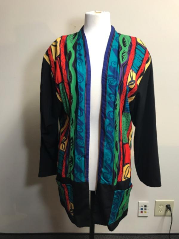 Bold, Wild, Multi-colored lightweight Cardigan sweater 100% rayon by Karen of Karen, size L large