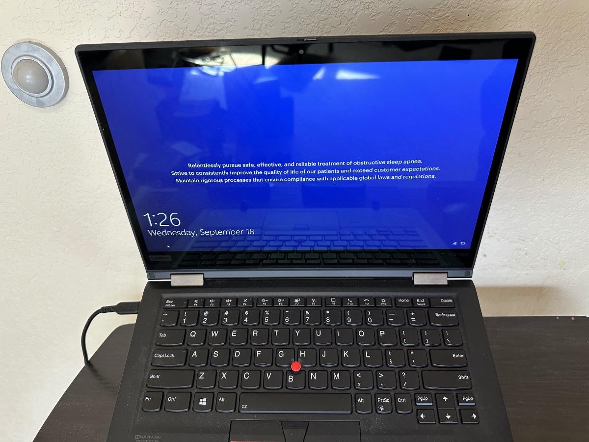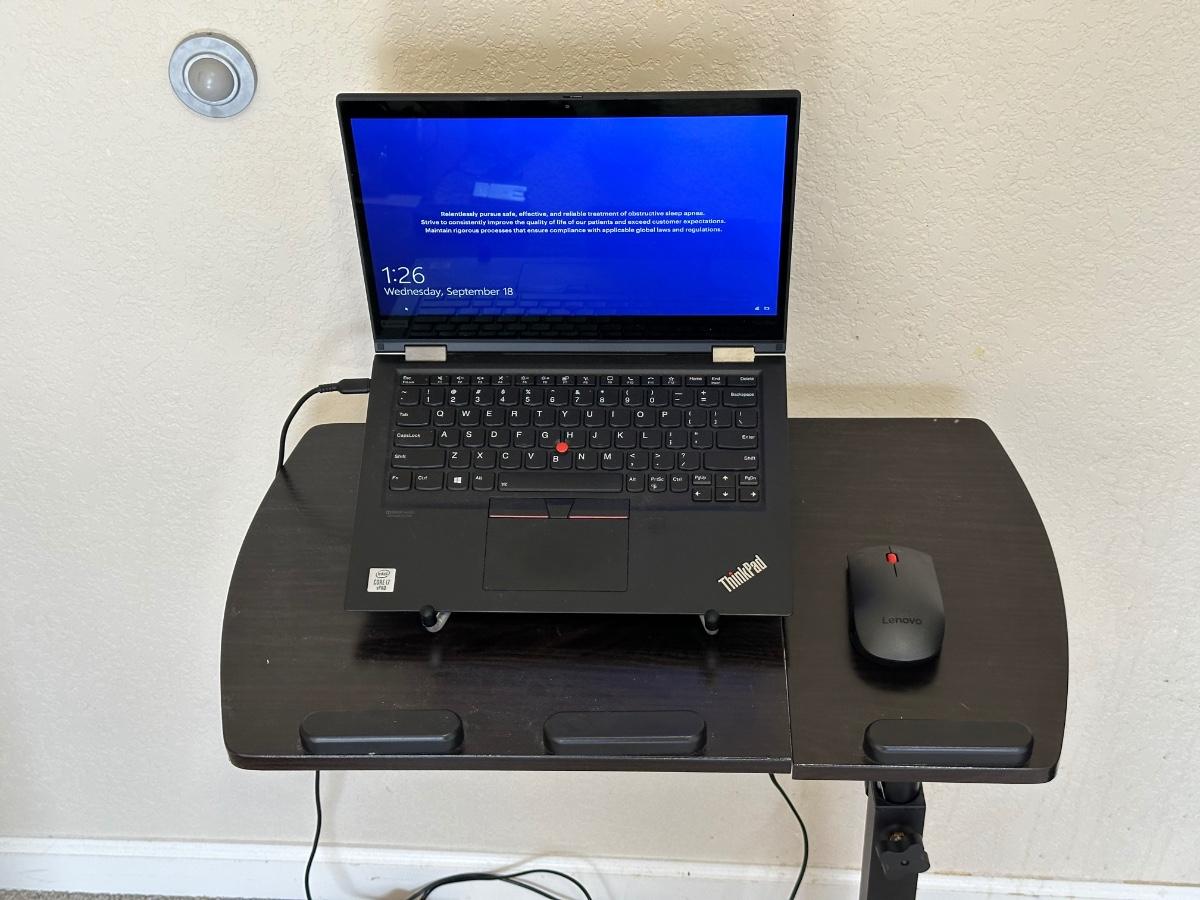 THINKPAD X13 YOGA GEN 1 LAPTOP W/LIFT, DESK ON CASTERS, WIRELESS MOUSE AND USB C & A PORT