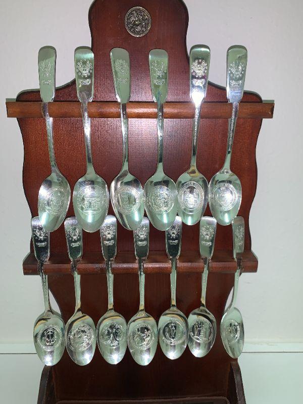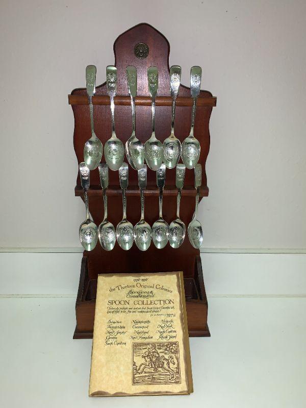 Thirteen Original Colonies Spoon Collection with Woodeen Rack / Holder