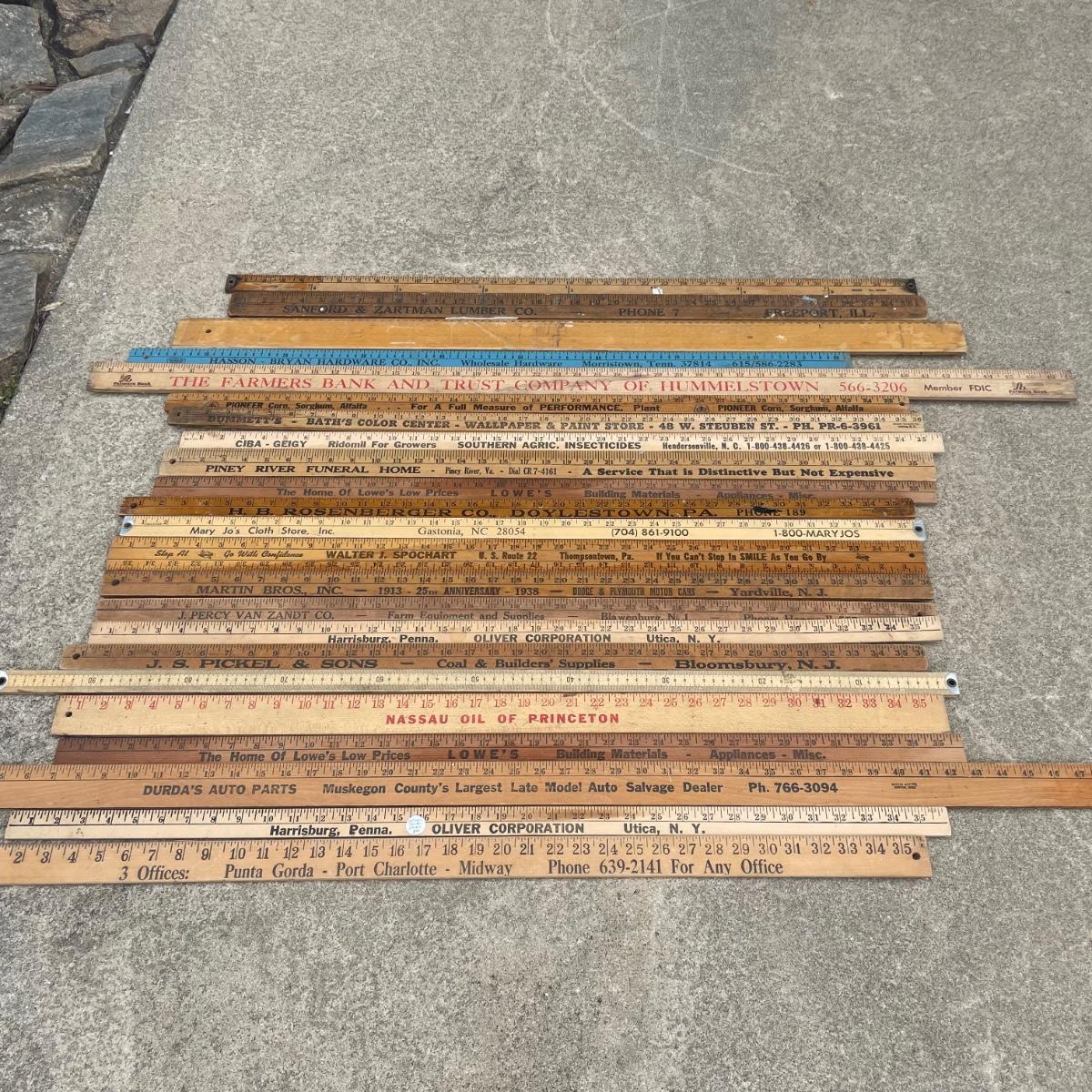 Over Thirty-Five Wooden Measuring Sticks /Yard Sticks incl Asheville (BL-RG)