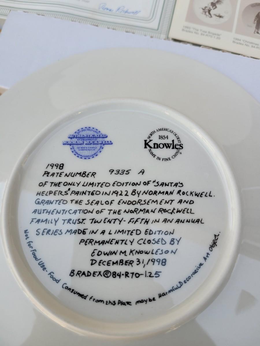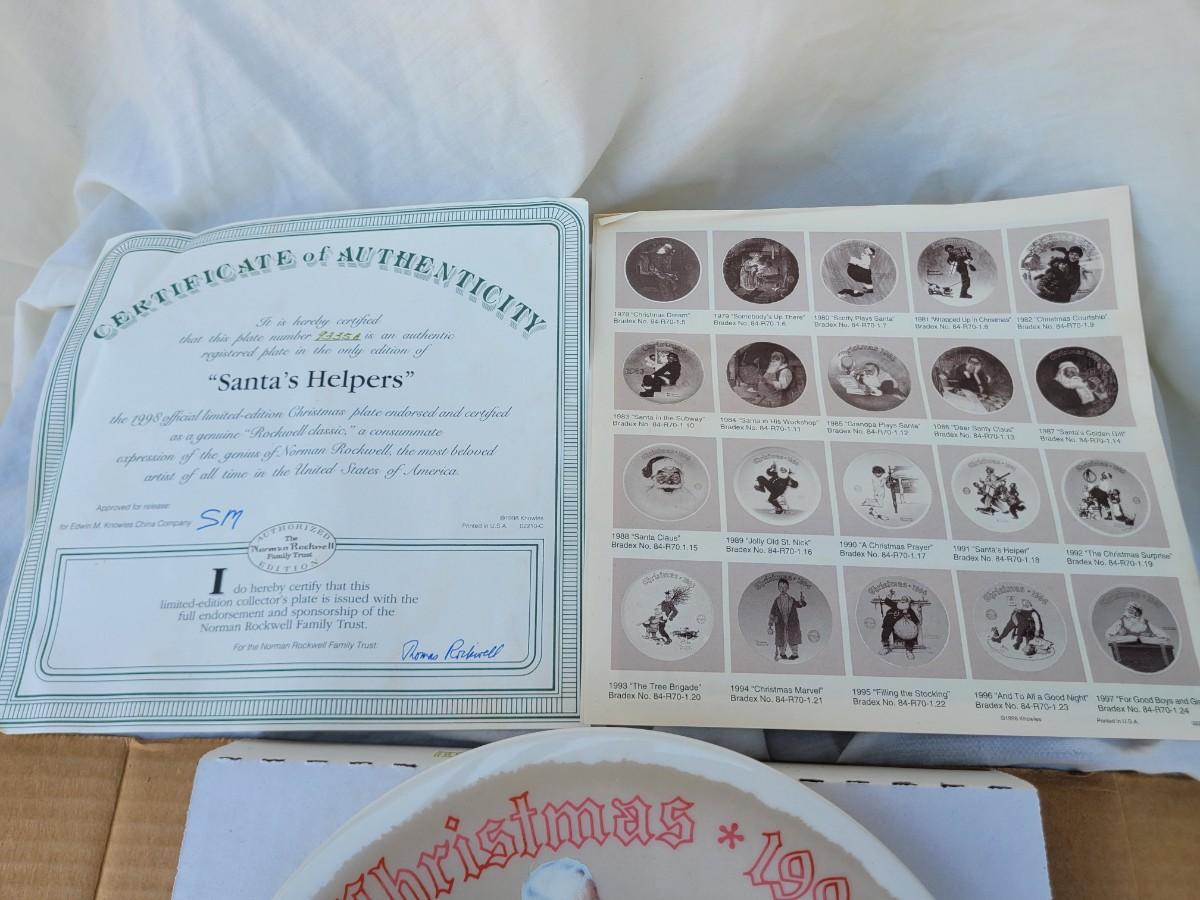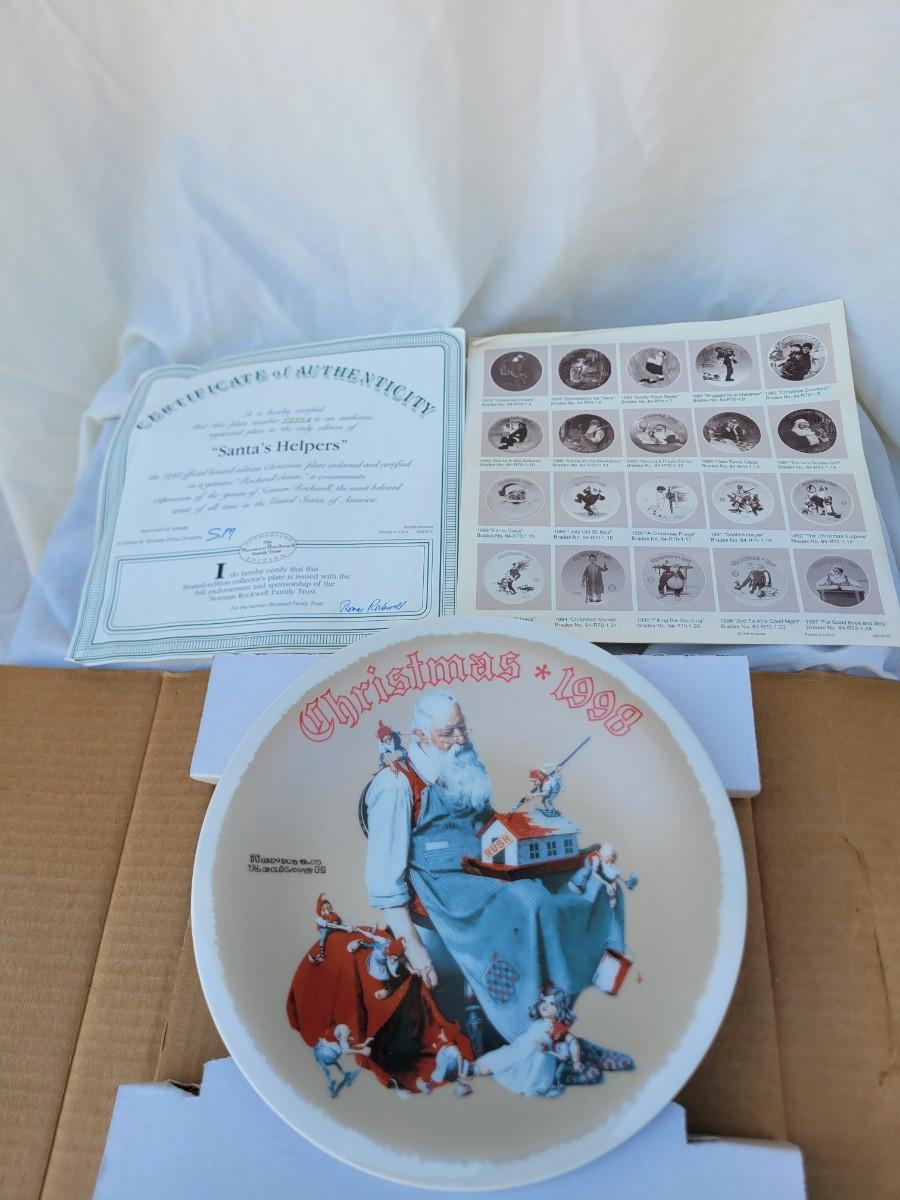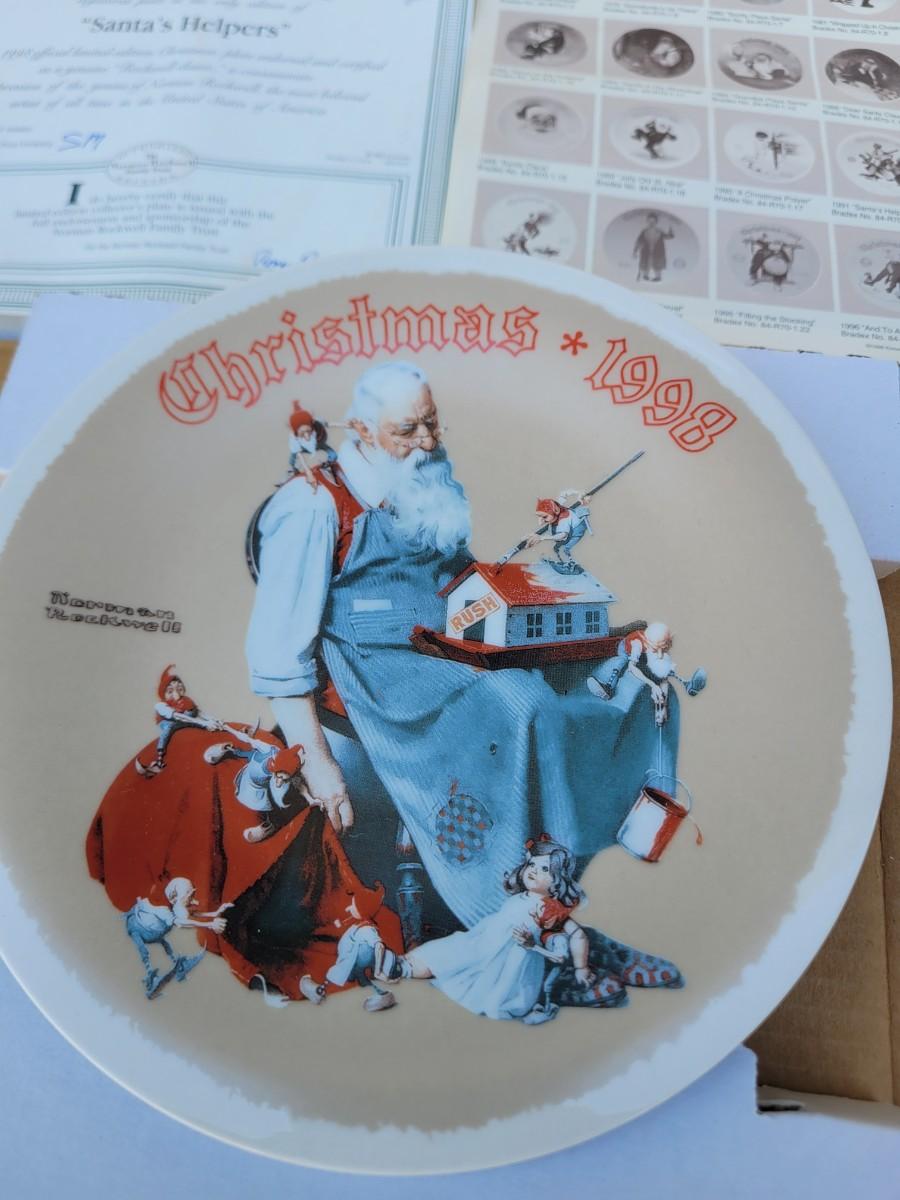This is a Knowles Norman Rockwell Santa Christmas Collector Plate from 1998 titled "Santa's Helpers".