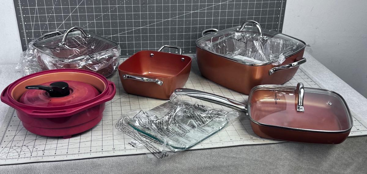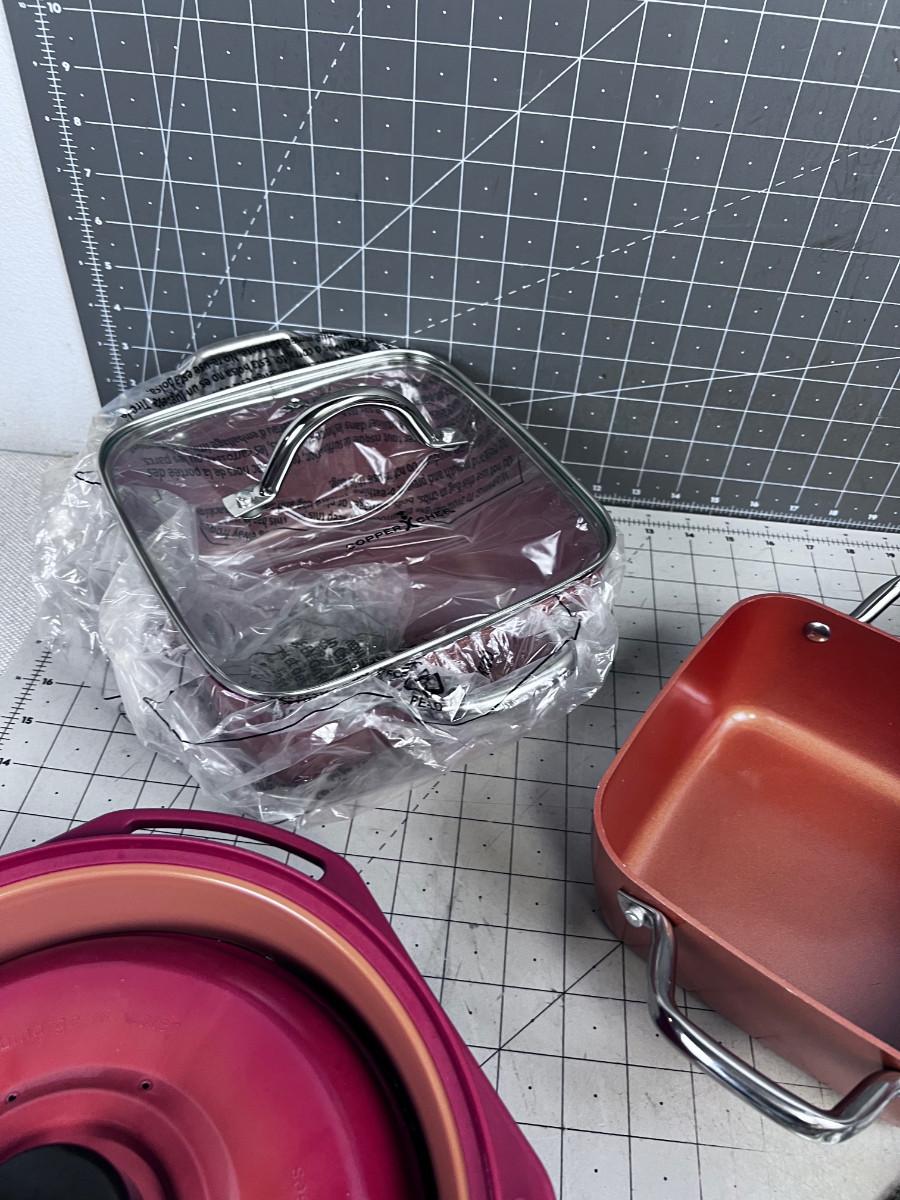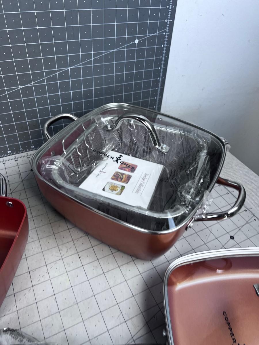 THIS IS A LOT FOR THE MONEY!!!! Copper Chef NEW Pan Set 4 Square Pans plus “🦆 NEW