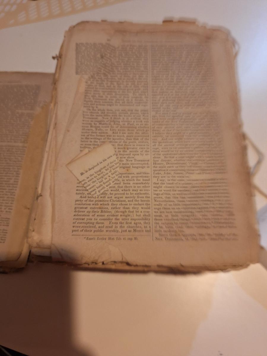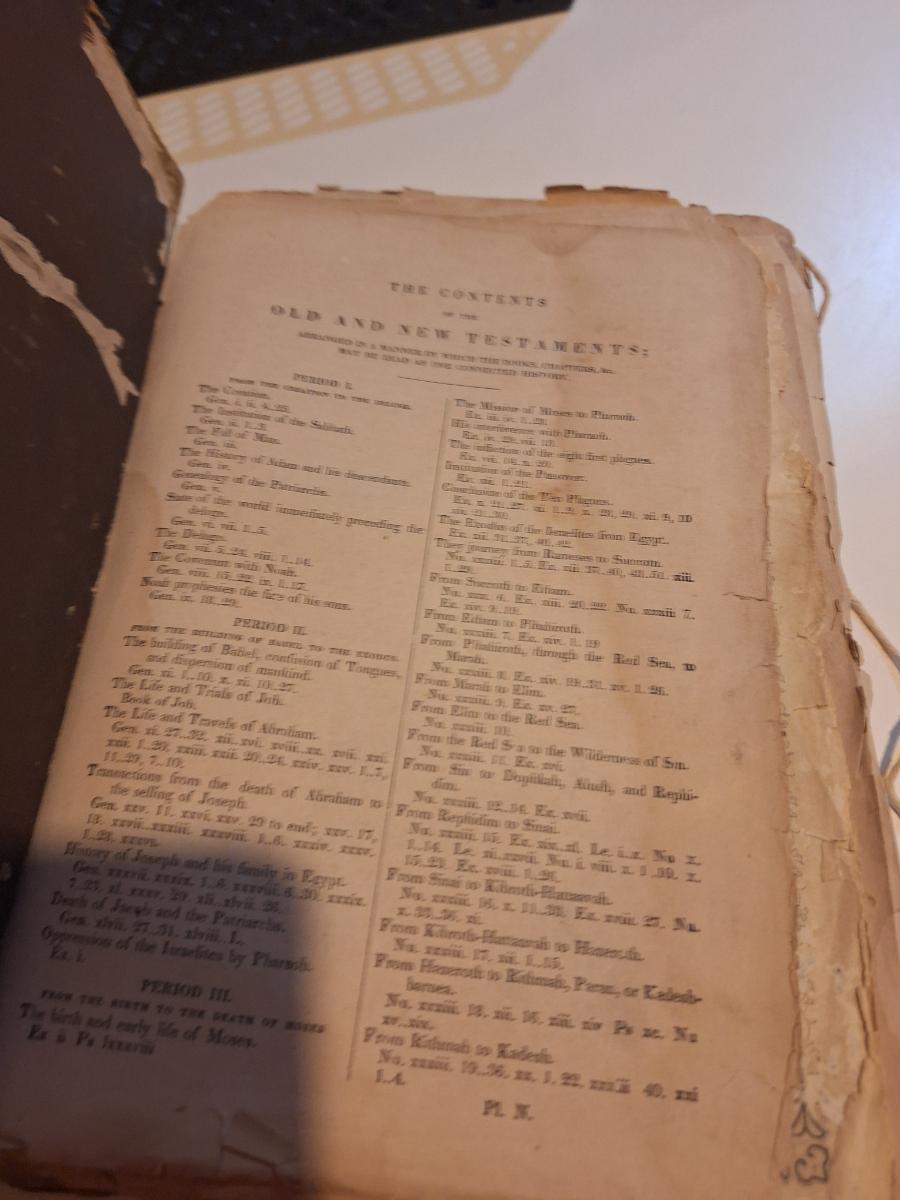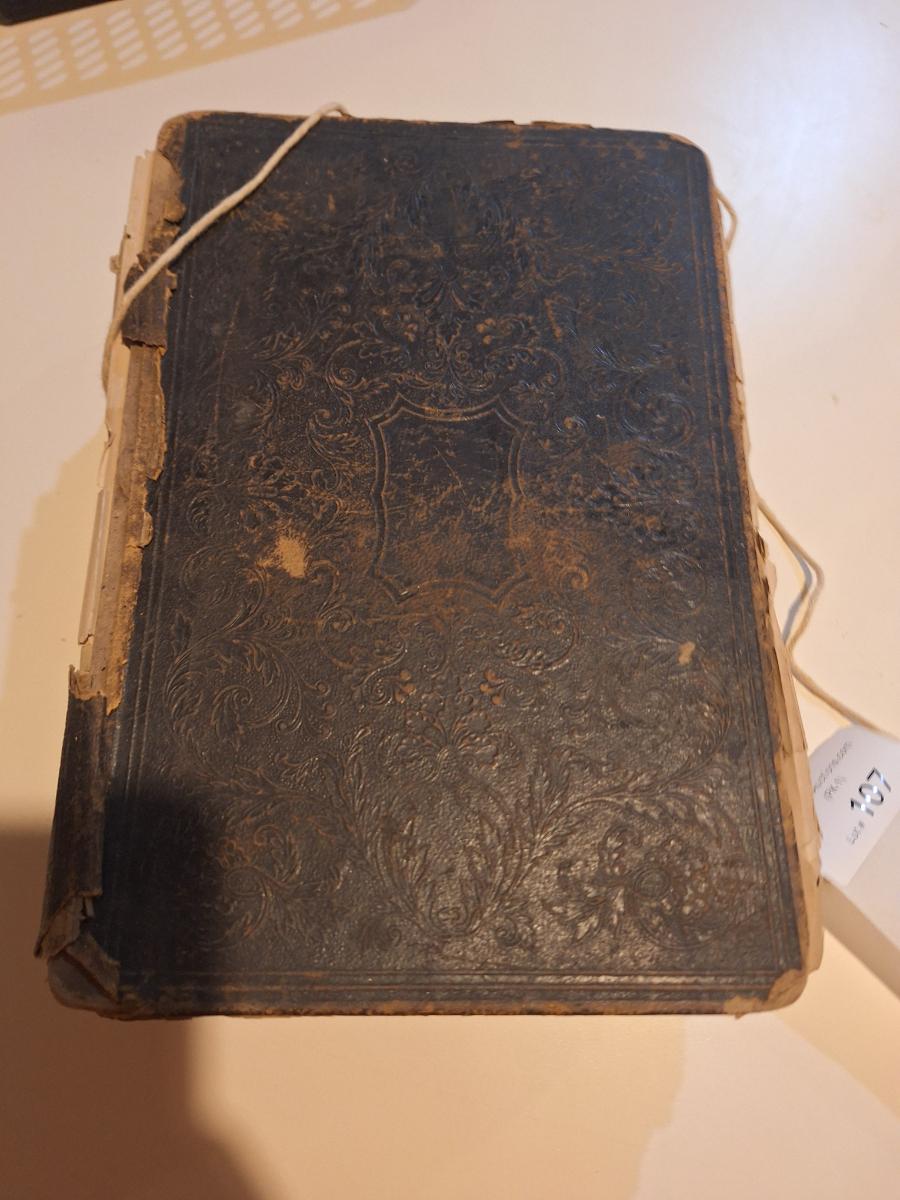 This is a WELL used large bible, has to be tied with string to hold the cover.  See all photos.