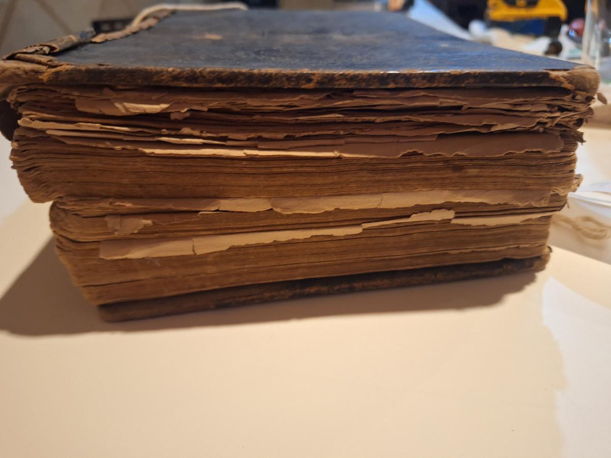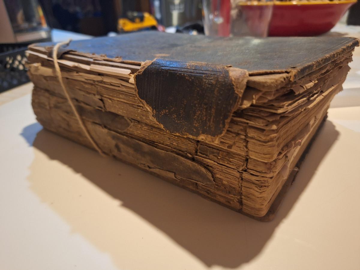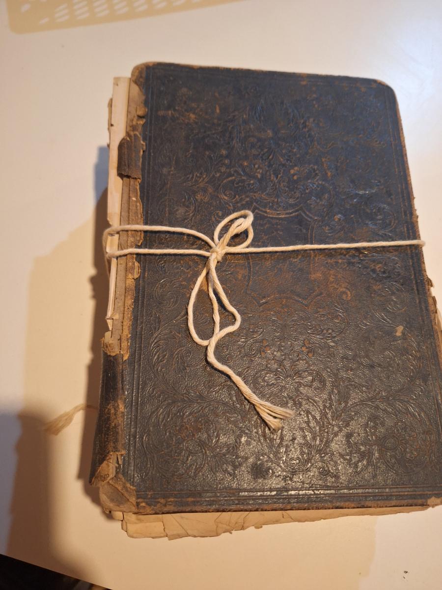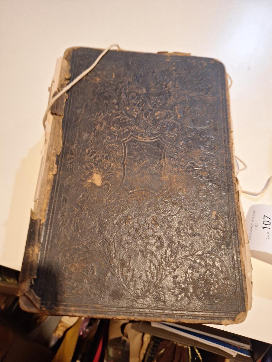 This is a WELL used large bible, has to be tied with string to hold the cover. See all photos.