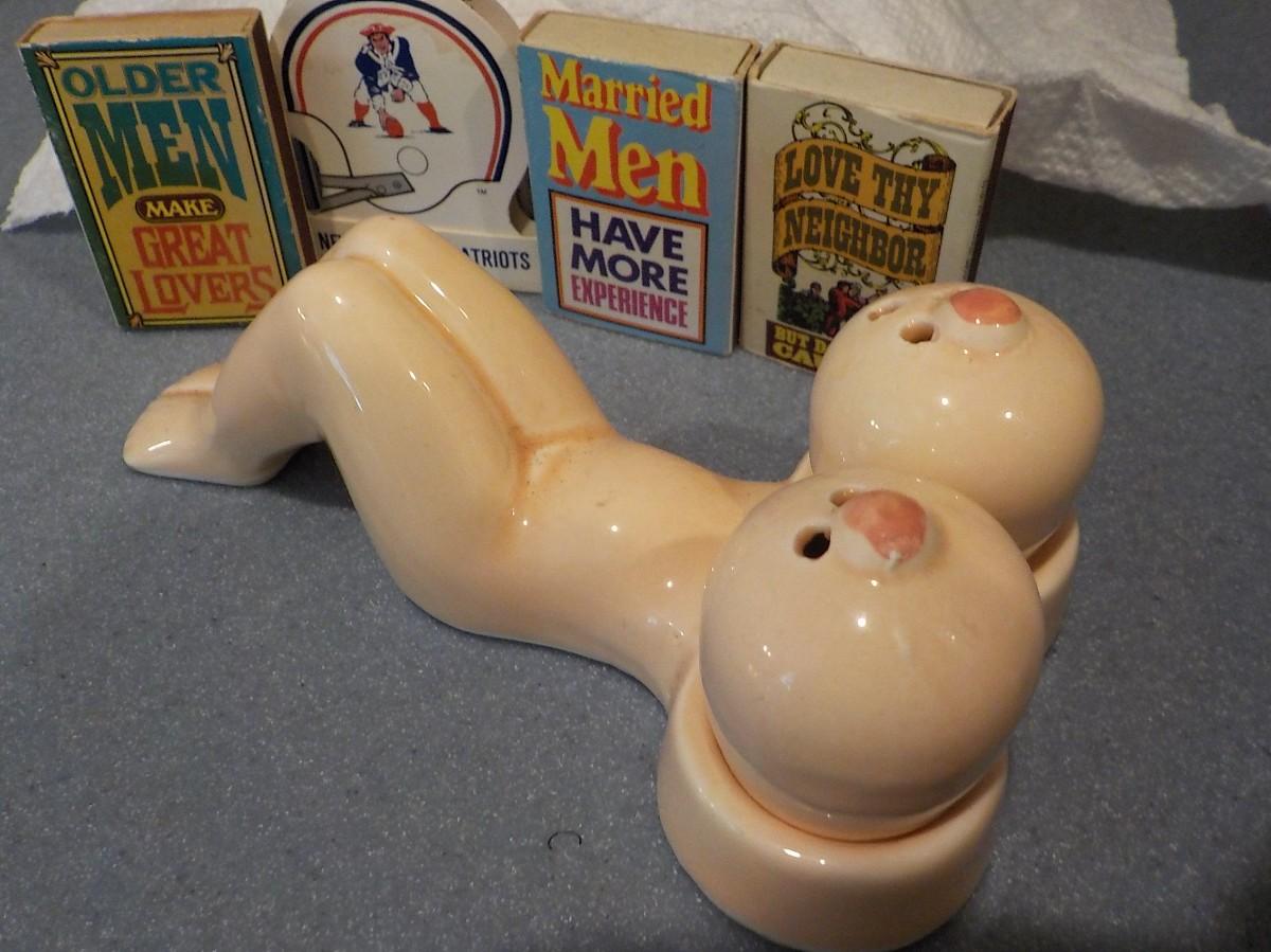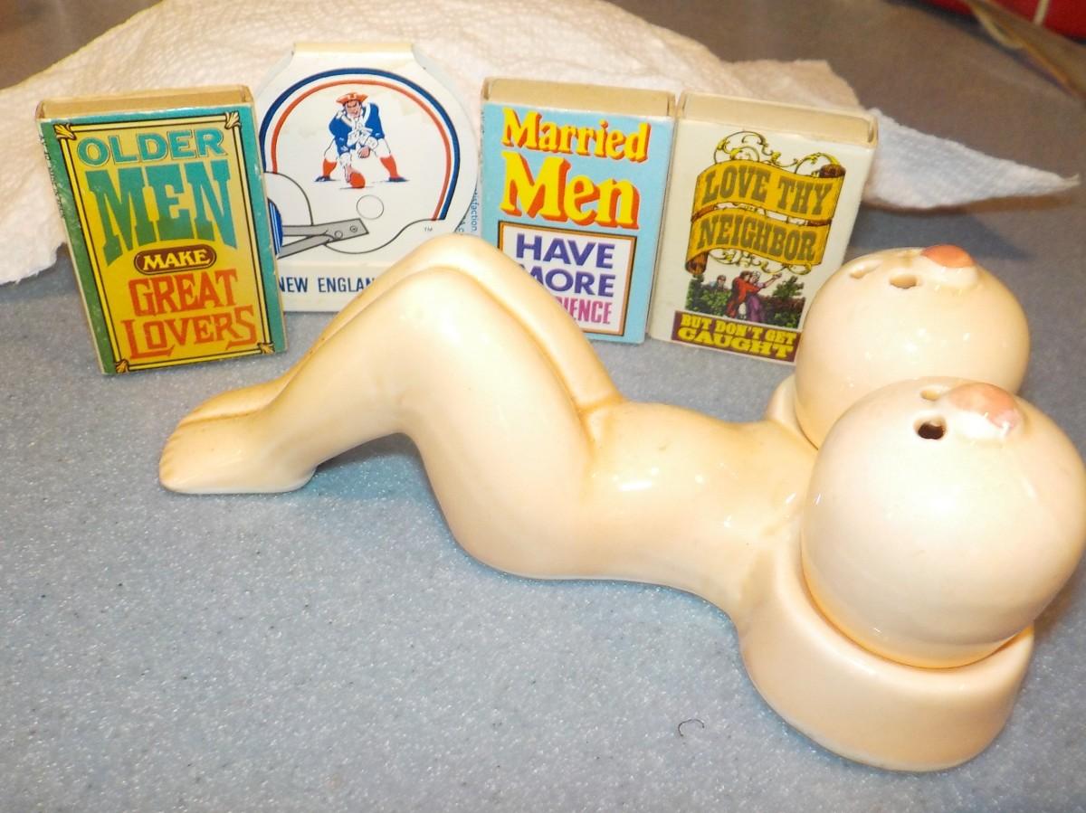 This is for over 18 y.o.'s....Collectable salt & pepper plus vintage matches/ est $10 to ???.