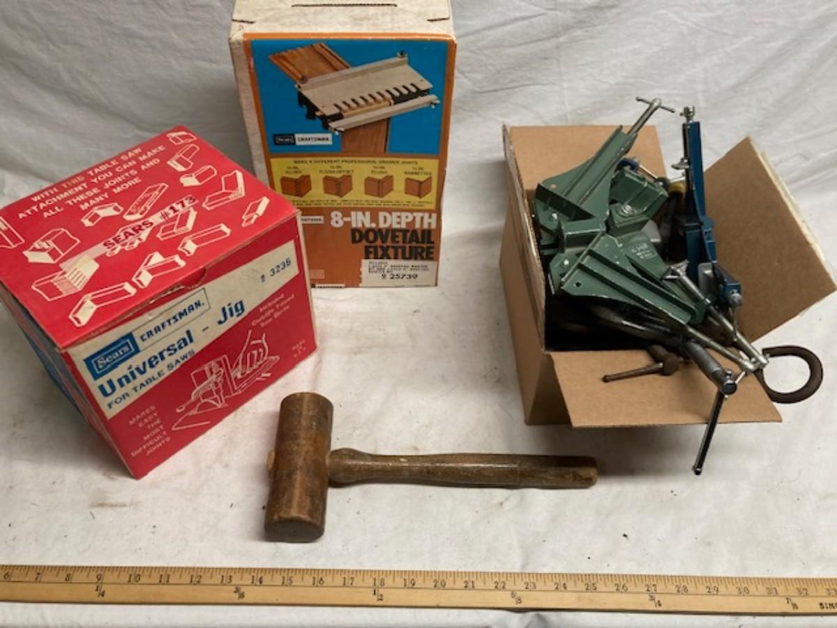 Dovetail fixture, Jig, clamps, and wooden hammer