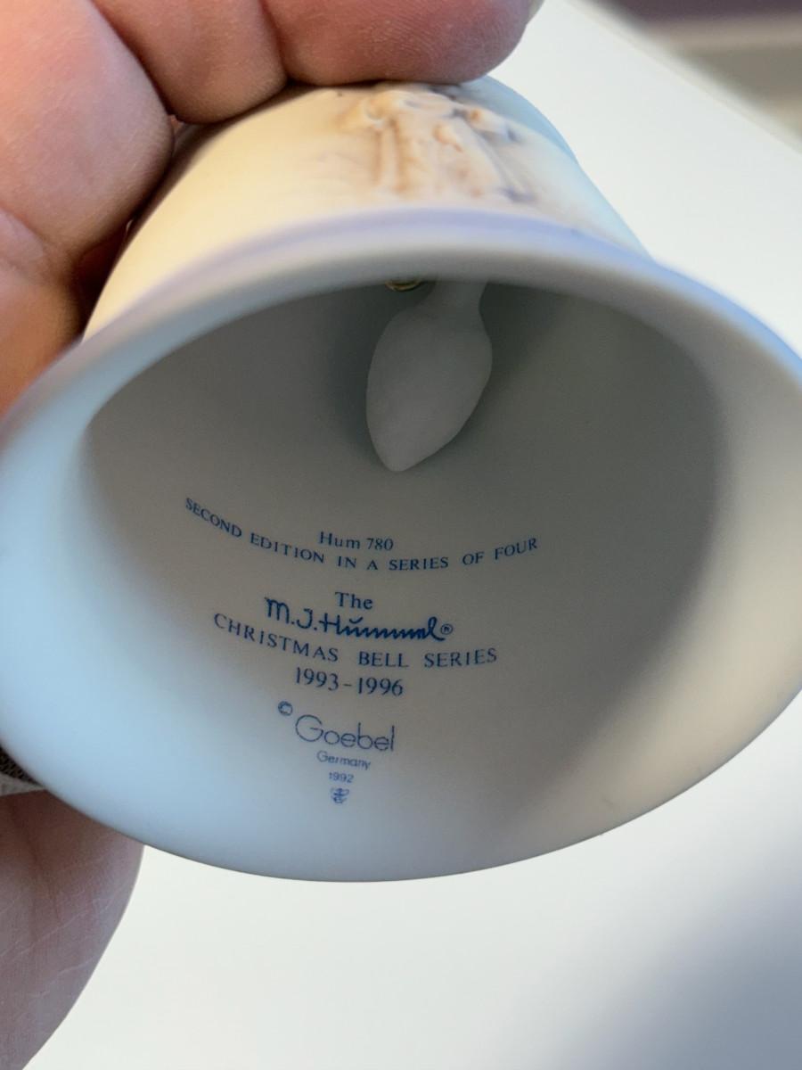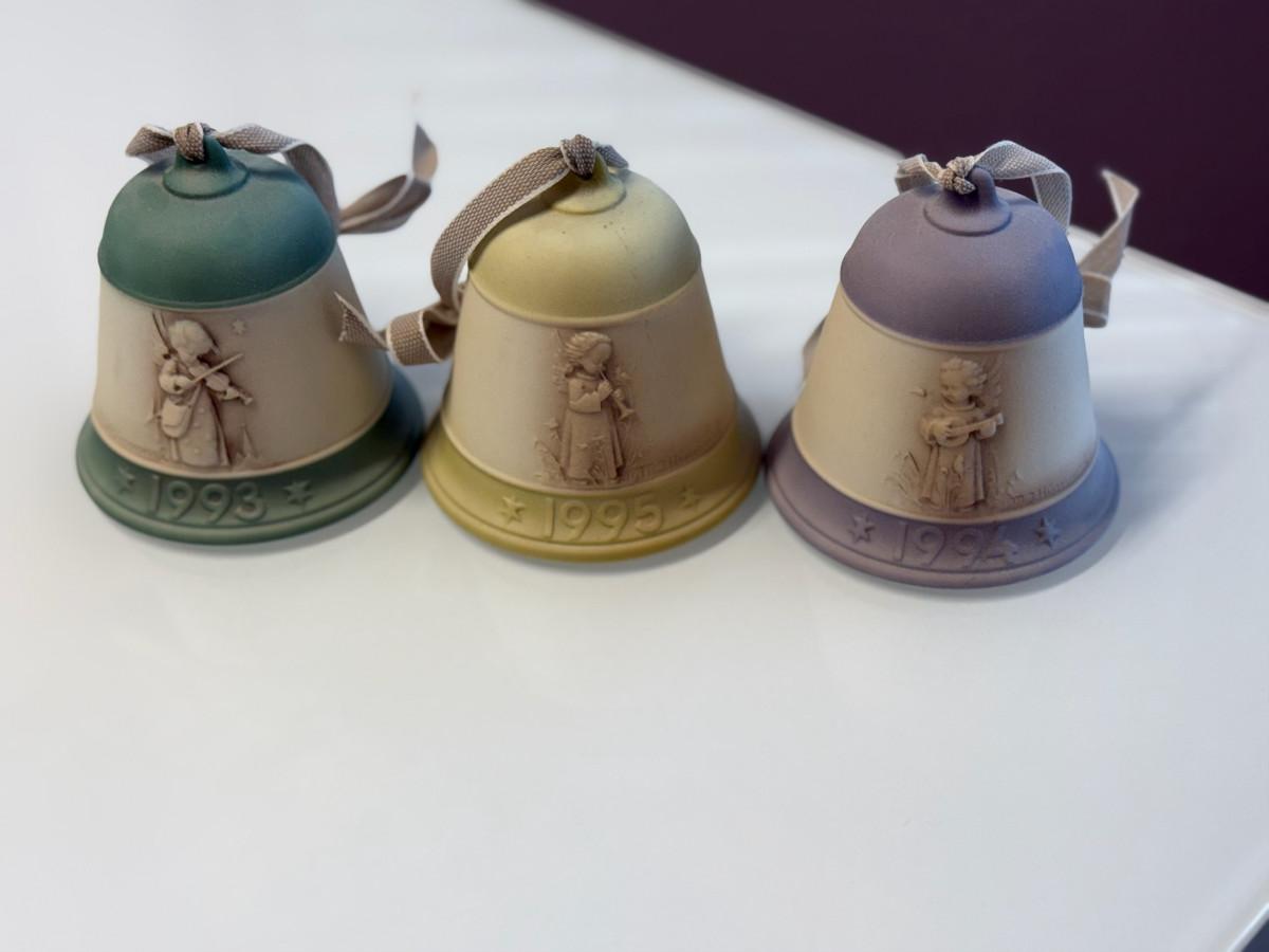 This lot of three M.J. Hummel Christmas bell ornaments