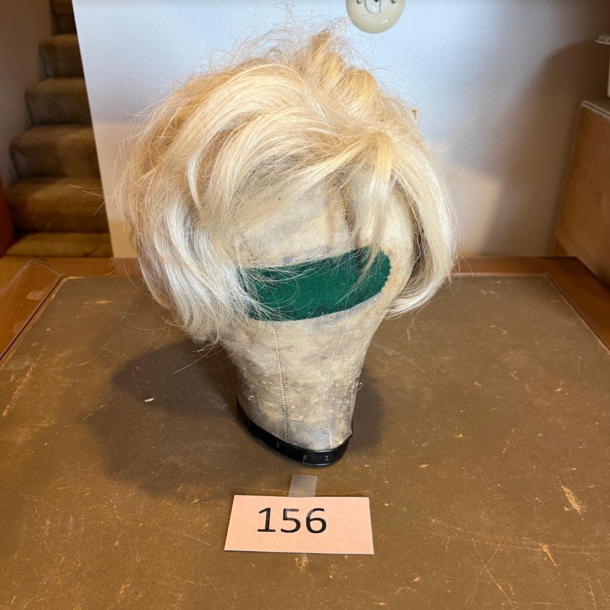 This is a very old cloth styling wig holder. It was one the wig consultant would trim the wig with.