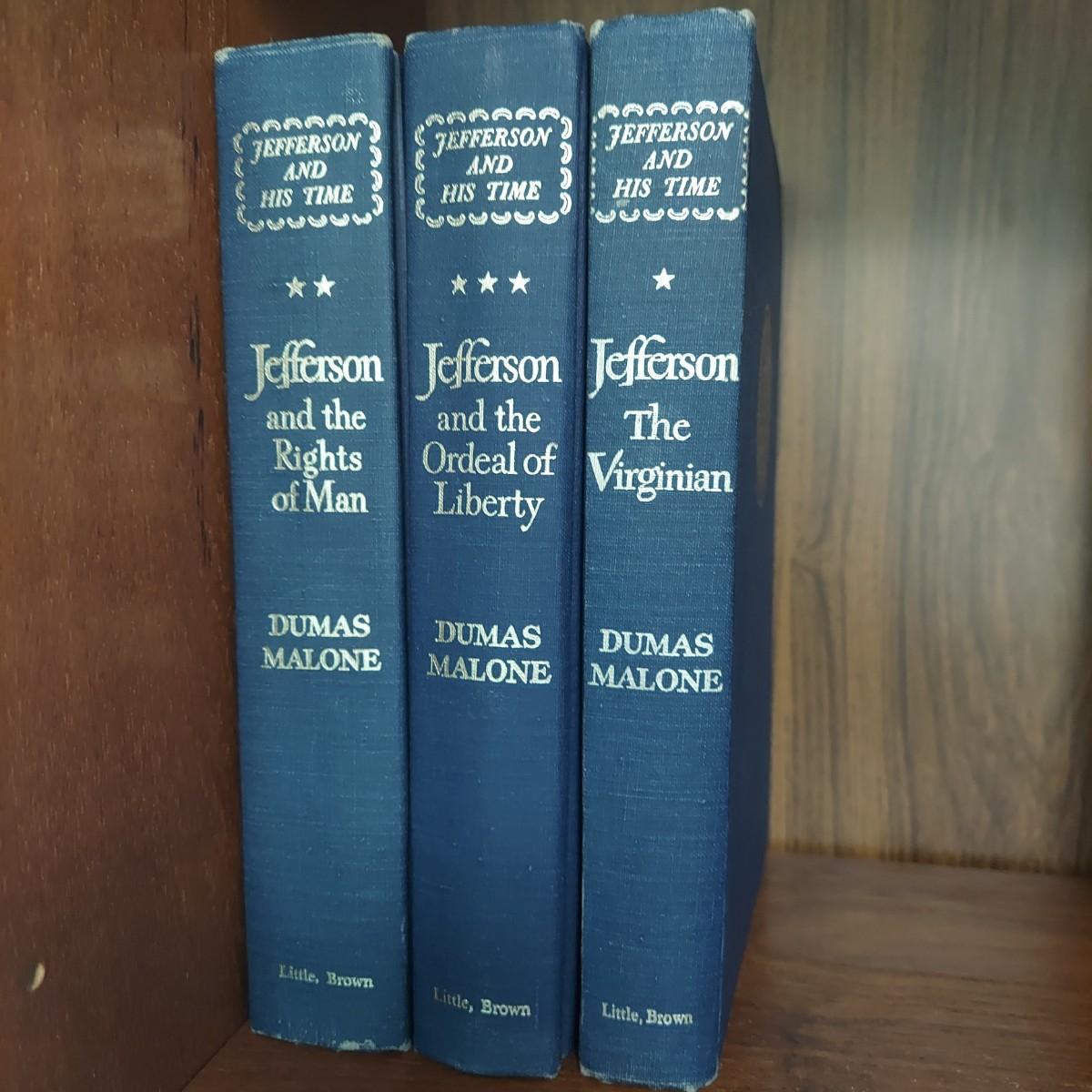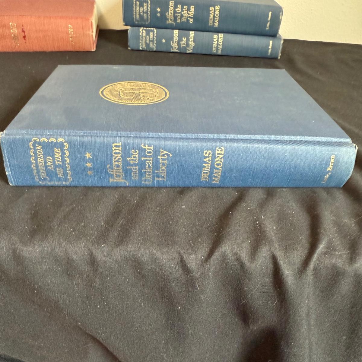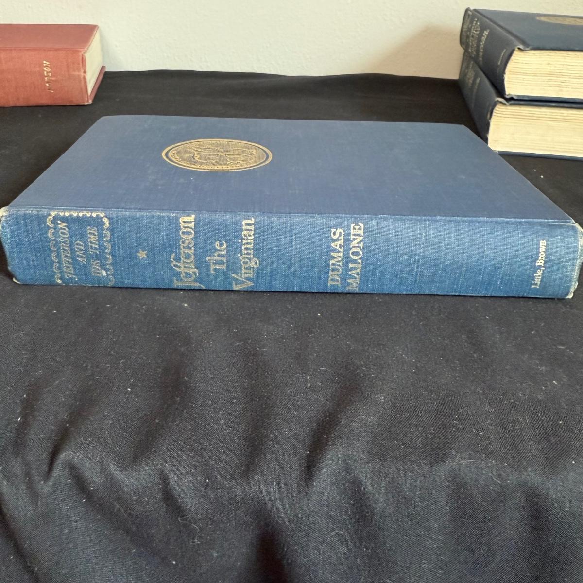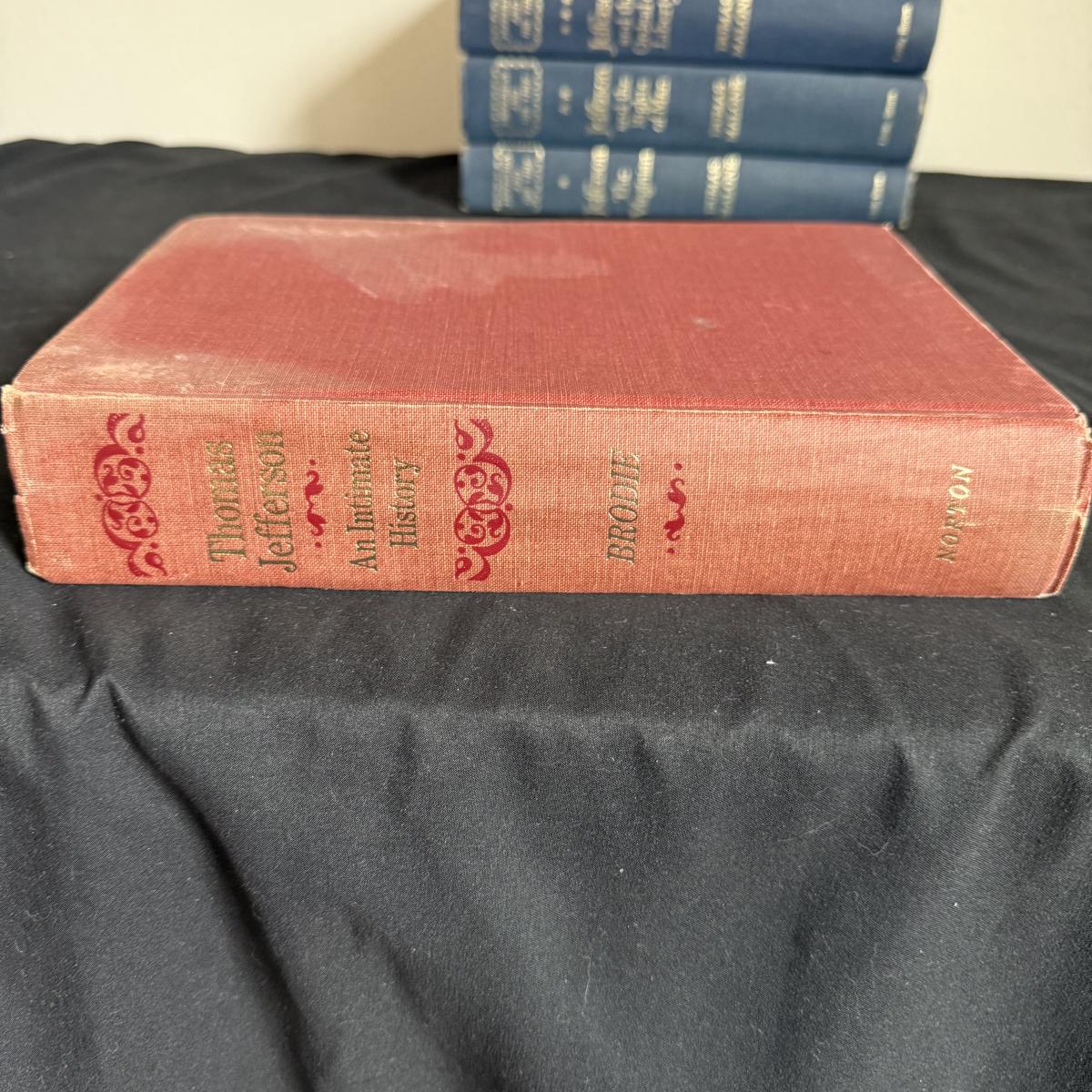 This lot contains four books about Thomas Jefferson. There are three volumes from Jefferson And His Time by Dumas Malone. Comes with Jefferson The Virginian, Jefferson and the Rights of Man, Jefferson and the Ordeal of Liberty. Also included in this lot is Thomas Jefferson An Intimate History by Fawn Brodie. This book in particular appears to have some water damage and all of the books are a bit worn, see pictures for details. Shipping available.