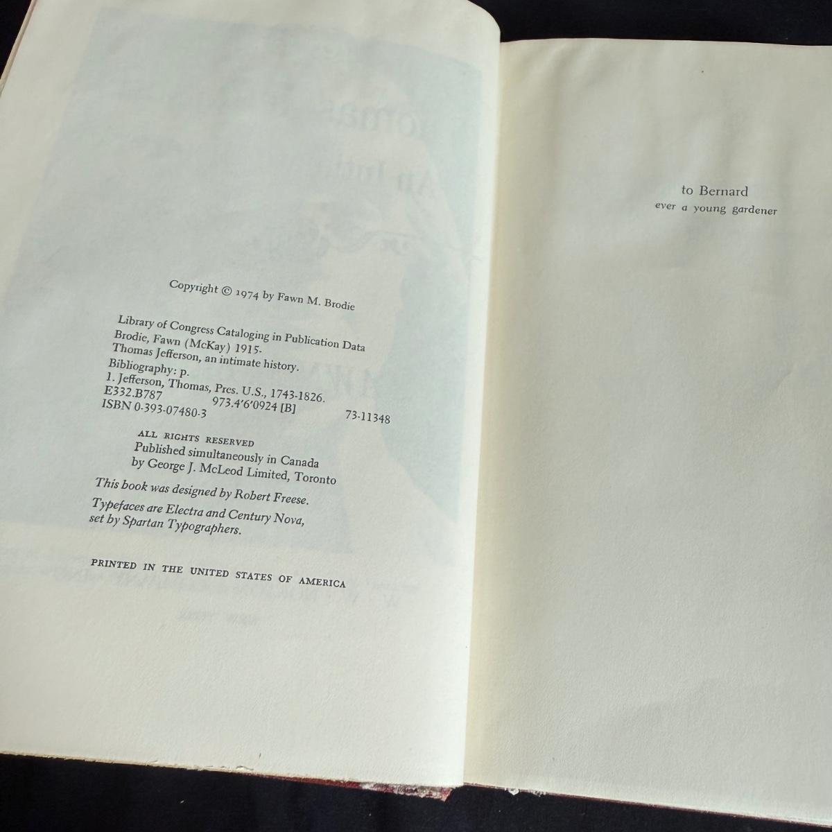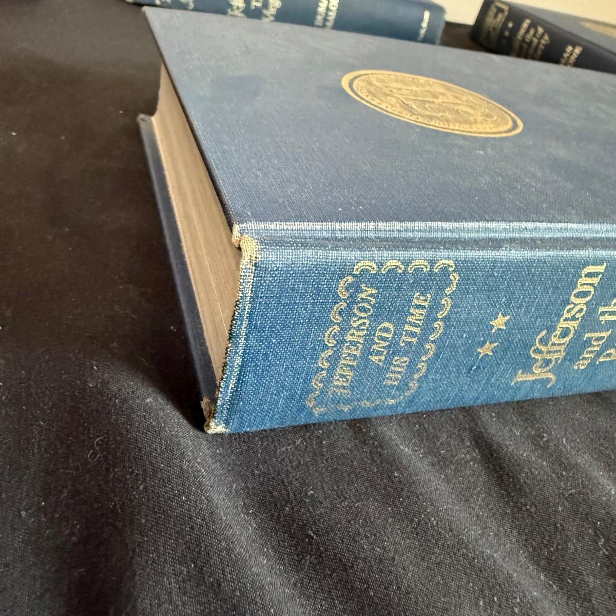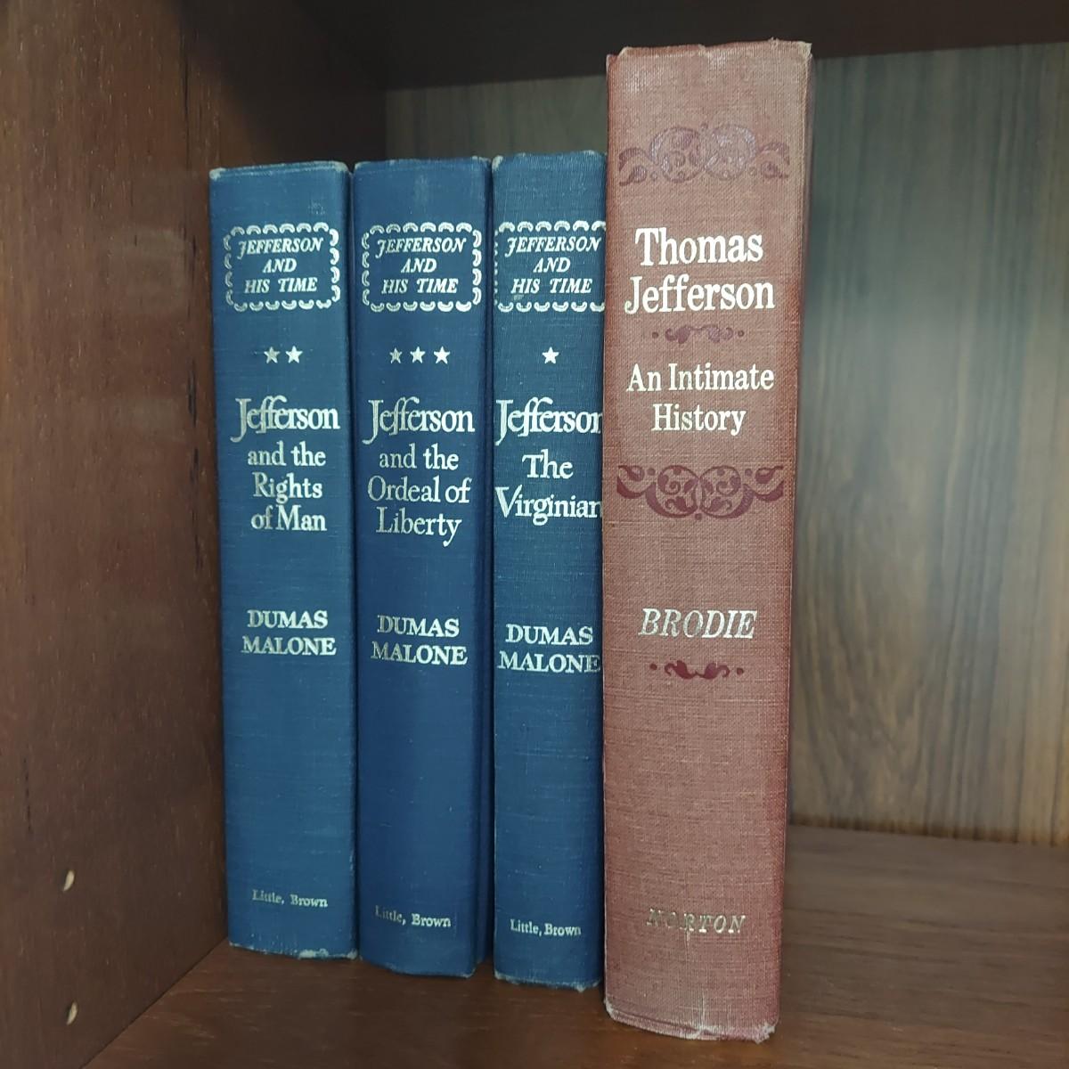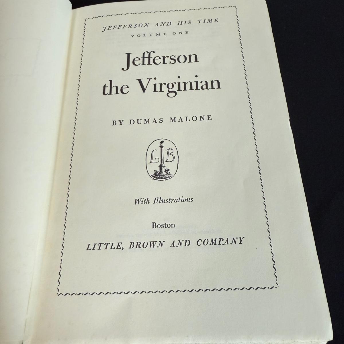 This lot contains four books about Thomas Jefferson. There are three volumes from Jefferson And His Time by Dumas Malone. Comes with Jefferson The Virginian, Jefferson and the Rights of Man, Jefferson and the Ordeal of Liberty. Also included in this lot is Thomas Jefferson An Intimate History by Fawn Brodie. This book in particular appears to have some water damage and all of the books are a bit worn, see pictures for details. Shipping available.
