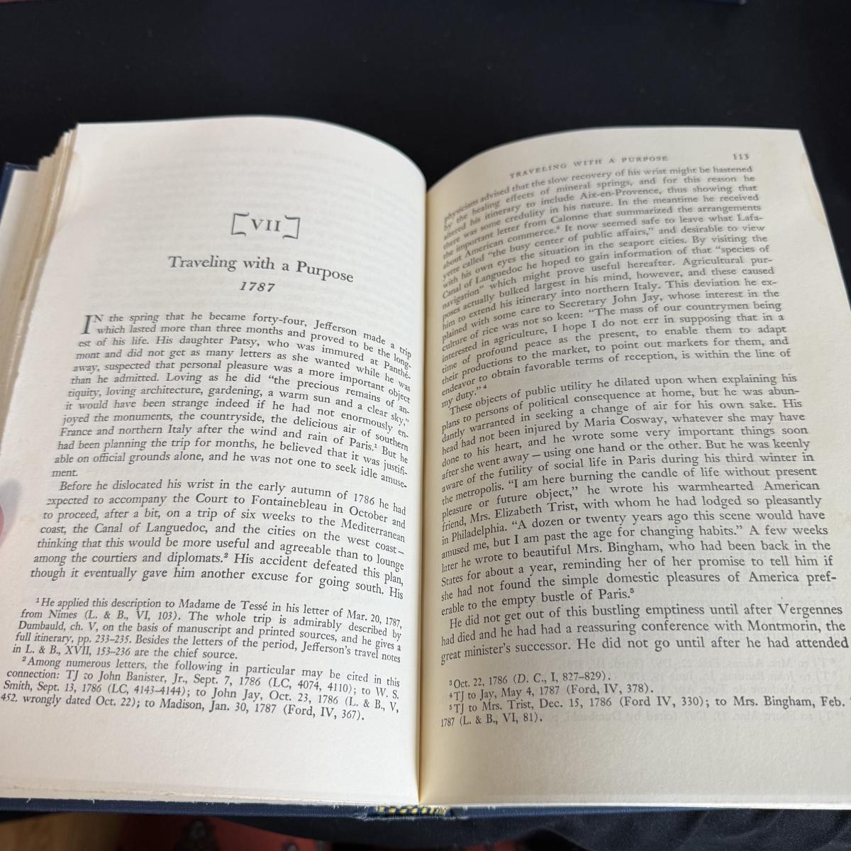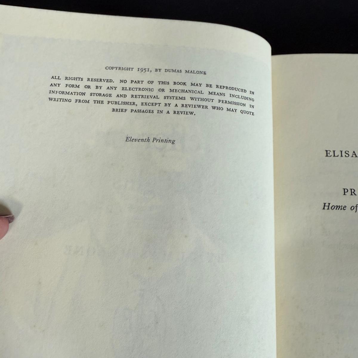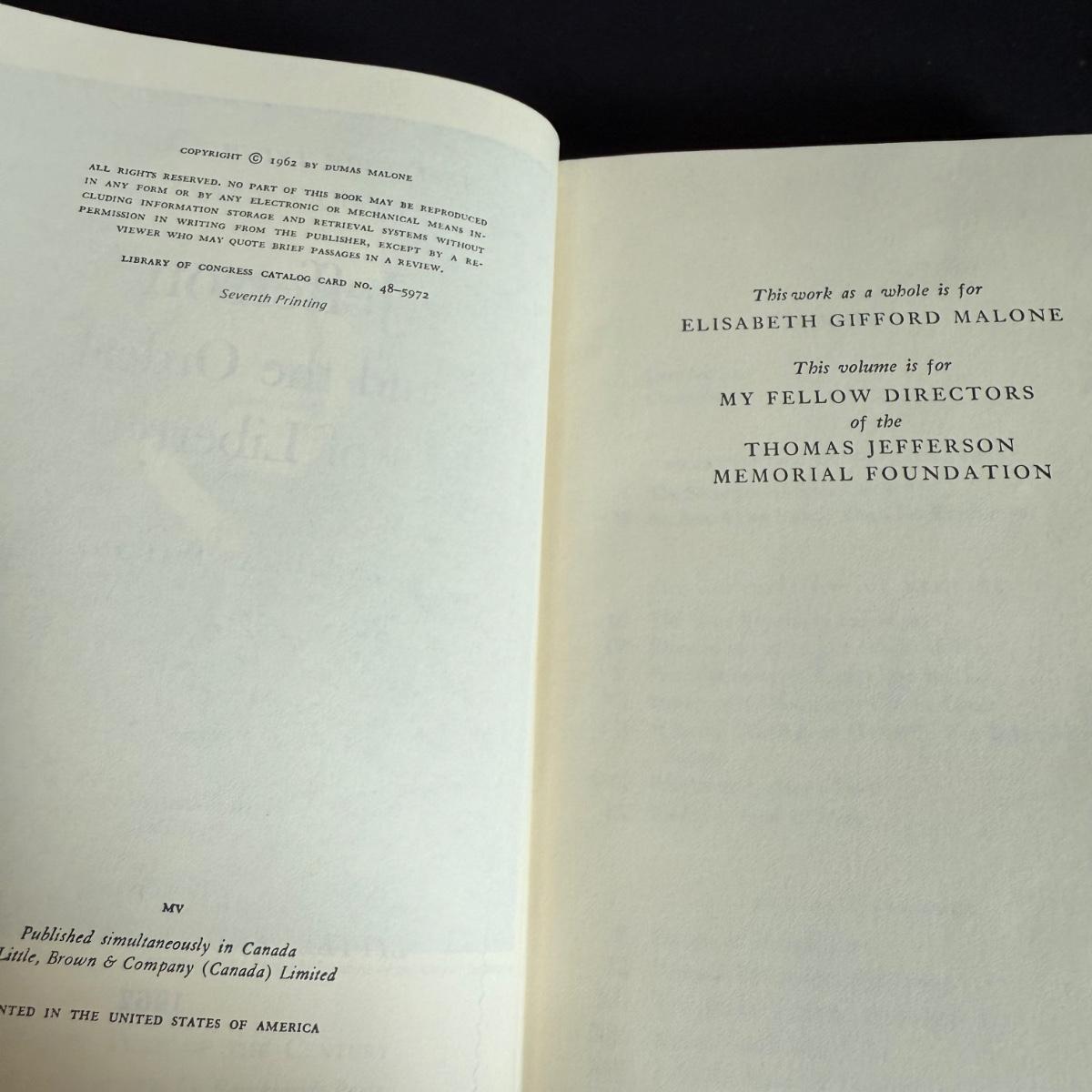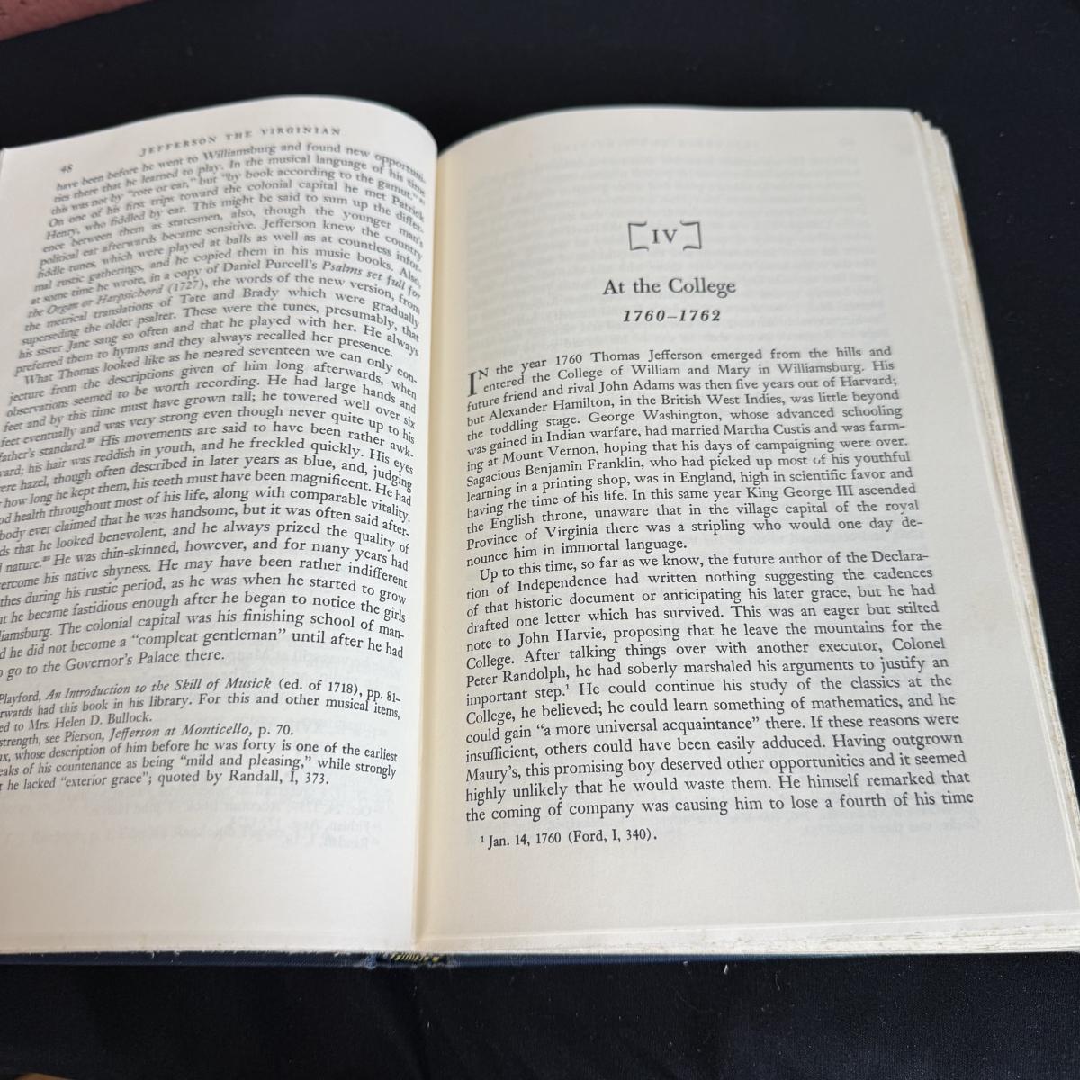 This lot contains four books about Thomas Jefferson. There are three volumes from Jefferson And His Time by Dumas Malone. Comes with Jefferson The Virginian, Jefferson and the Rights of Man, Jefferson and the Ordeal of Liberty. Also included in this lot is Thomas Jefferson An Intimate History by Fawn Brodie. This book in particular appears to have some water damage and all of the books are a bit worn, see pictures for details. Shipping available.