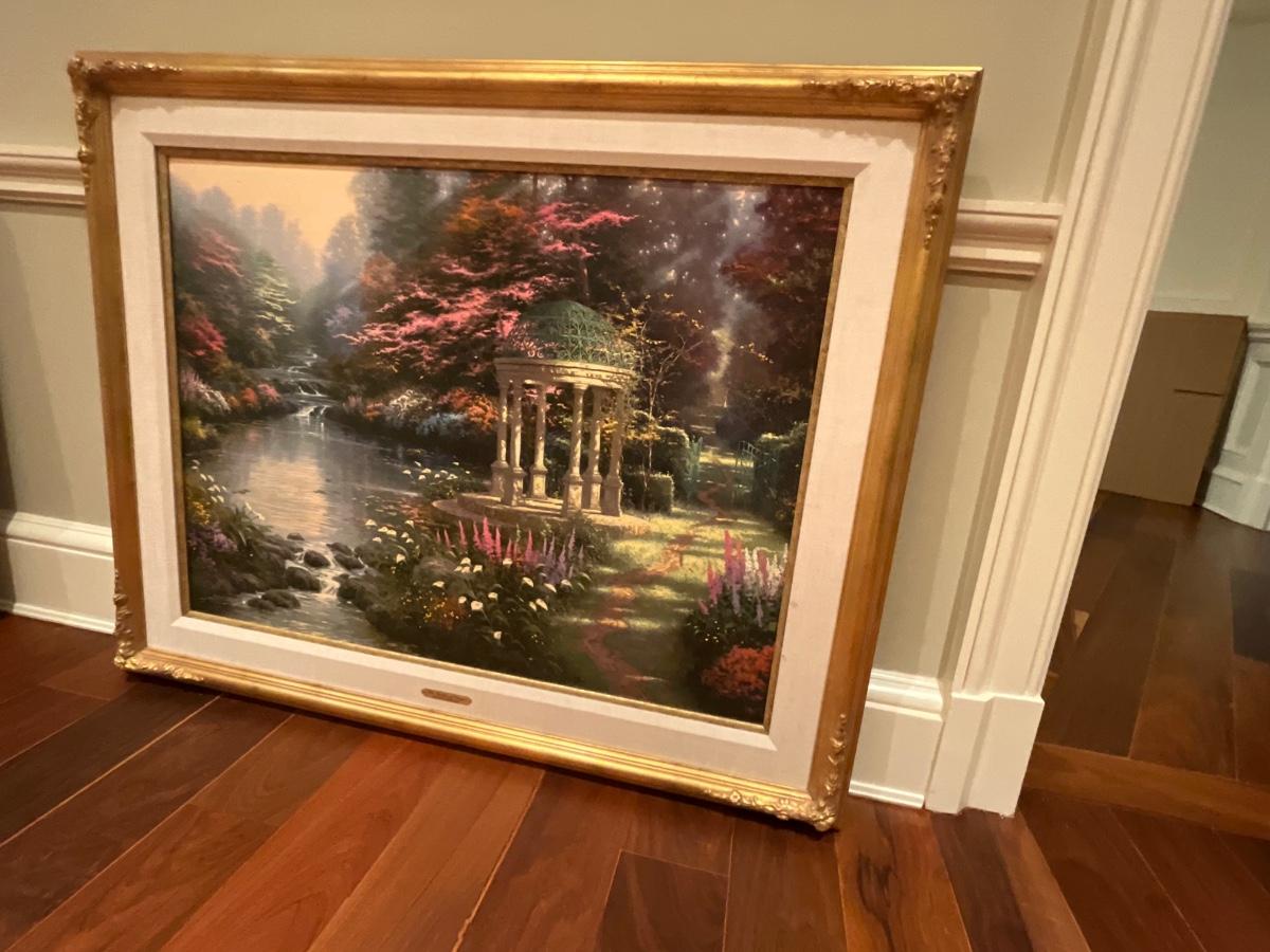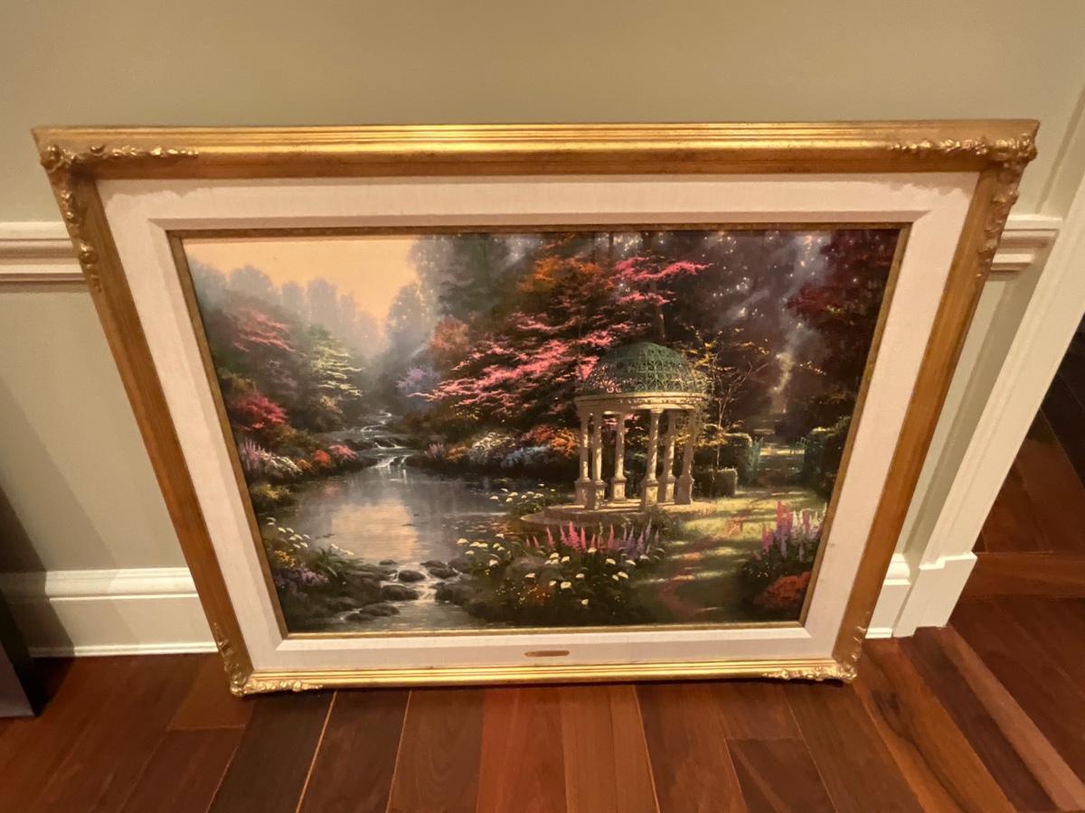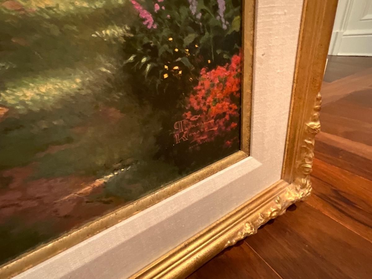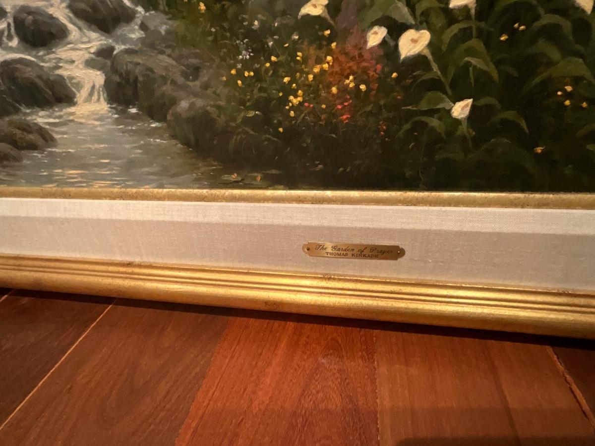 Thomas Kincaid the garden of prayer painting is 42.5 inches wide, 34 inches tall and 2 inches deep