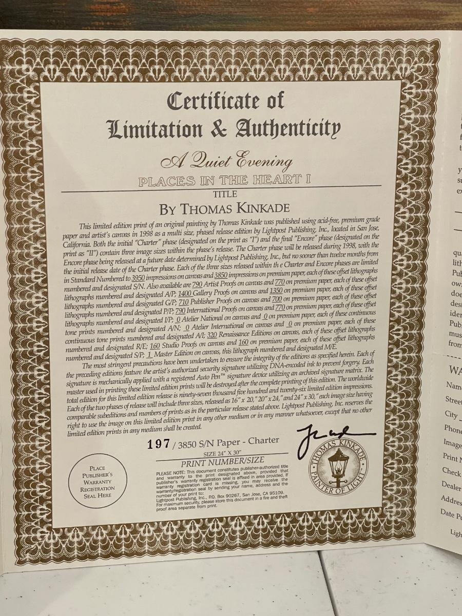 THOMAS KINCAID ~ “Places In The Heart I” ~ S/N Ltd Ed