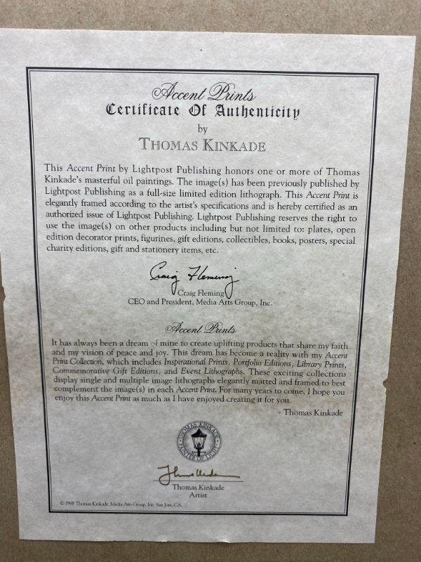 Thomas Kinkade 1998 Collector's Society print "Let Your Light Shine". COA attached to the back. Frame is about 11" square.