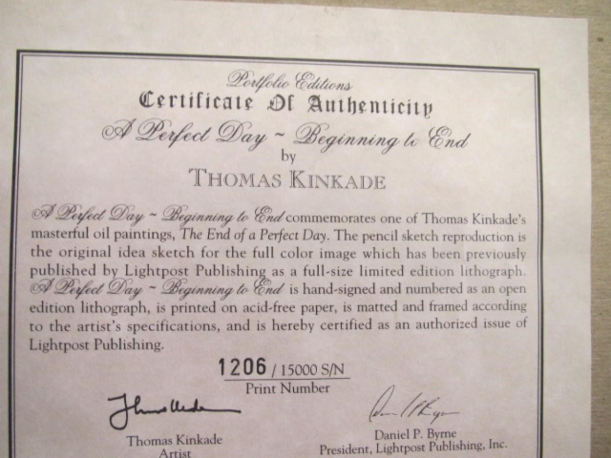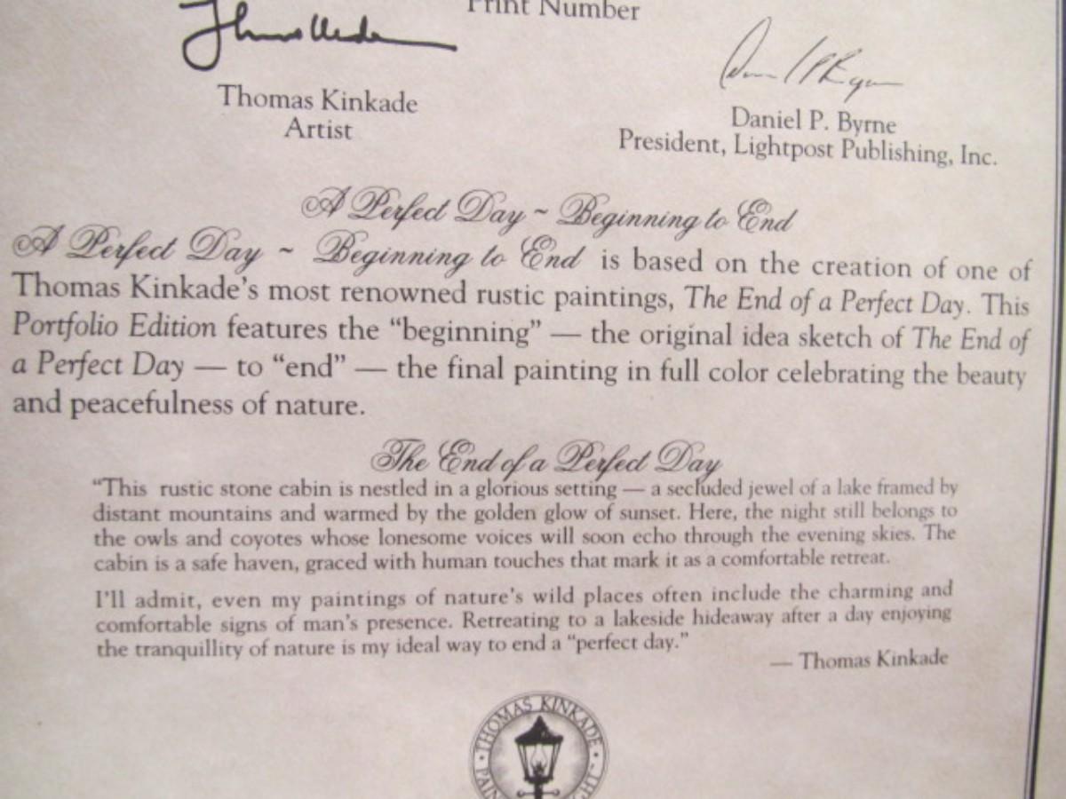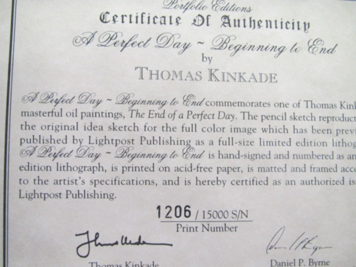 Thomas Kinkade "A Perfect Day Beginning To End" Lithograph S/N Signed Gold Frame