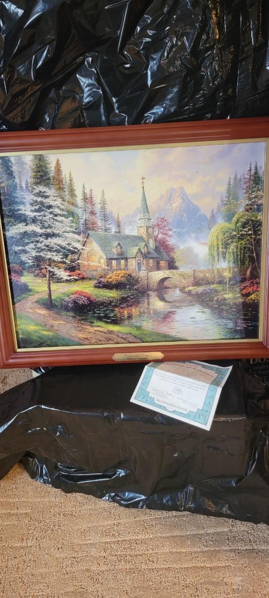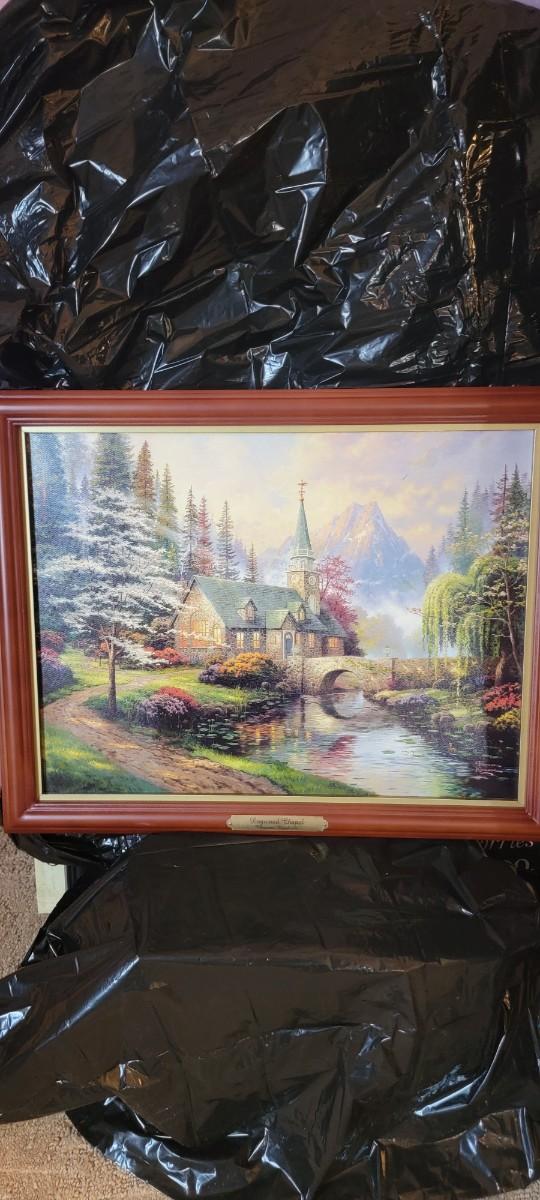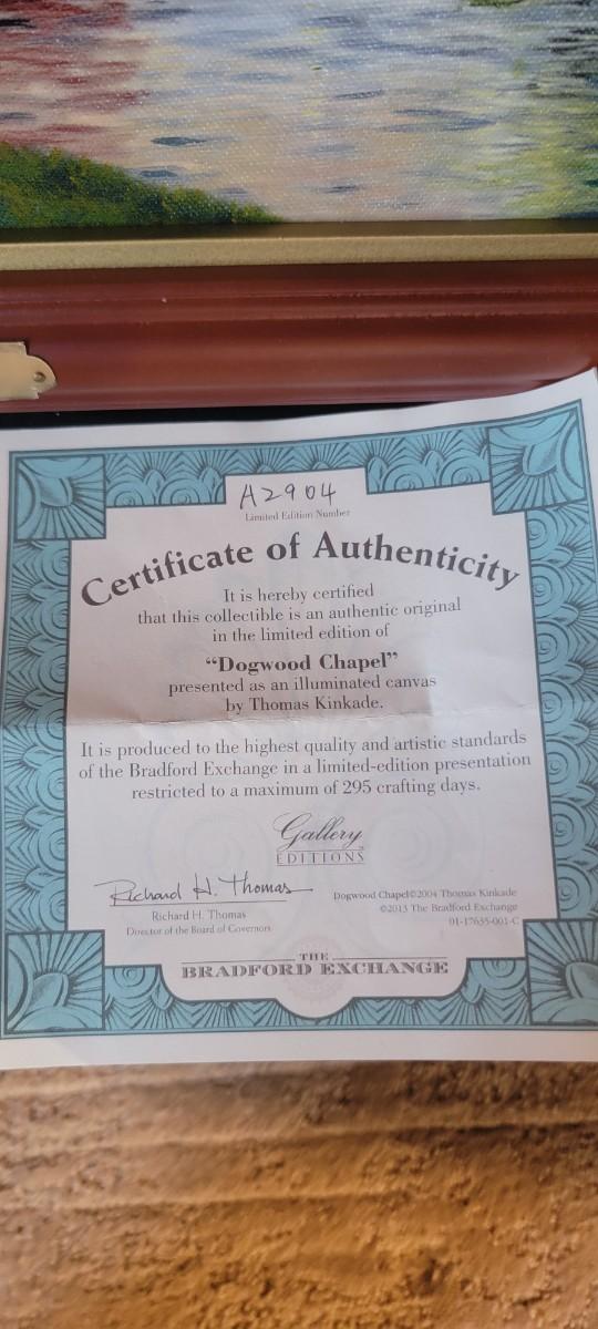 Bradford Exchange NIB Thomas Kinkade Dogwood Chapel Illuminating Canvas Print. 20" x 16"