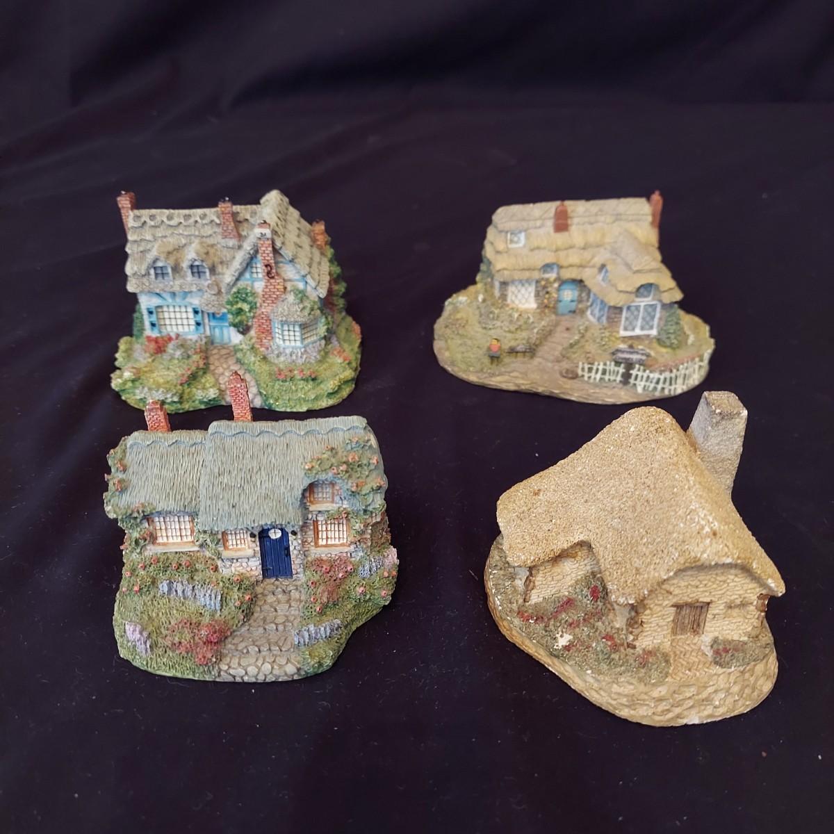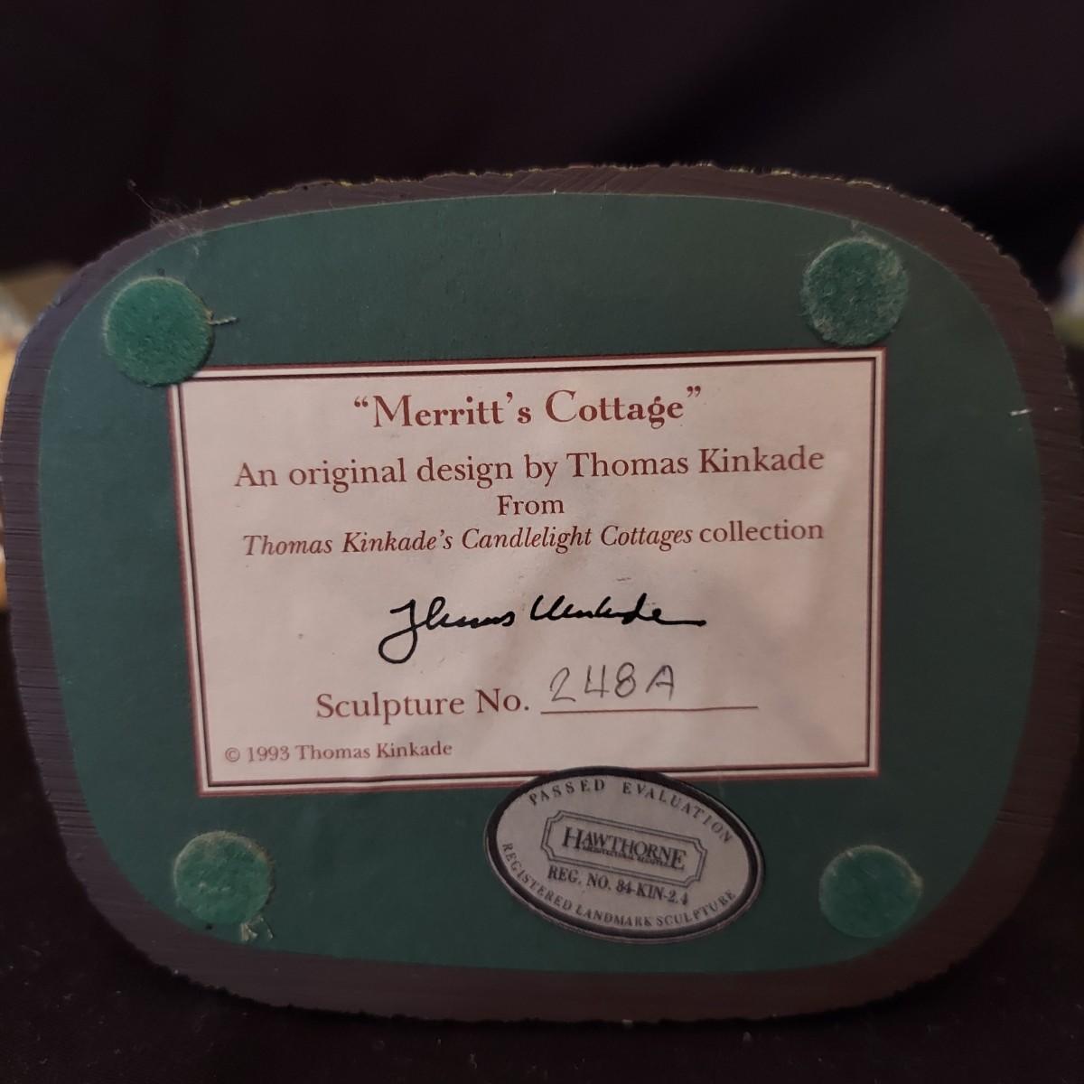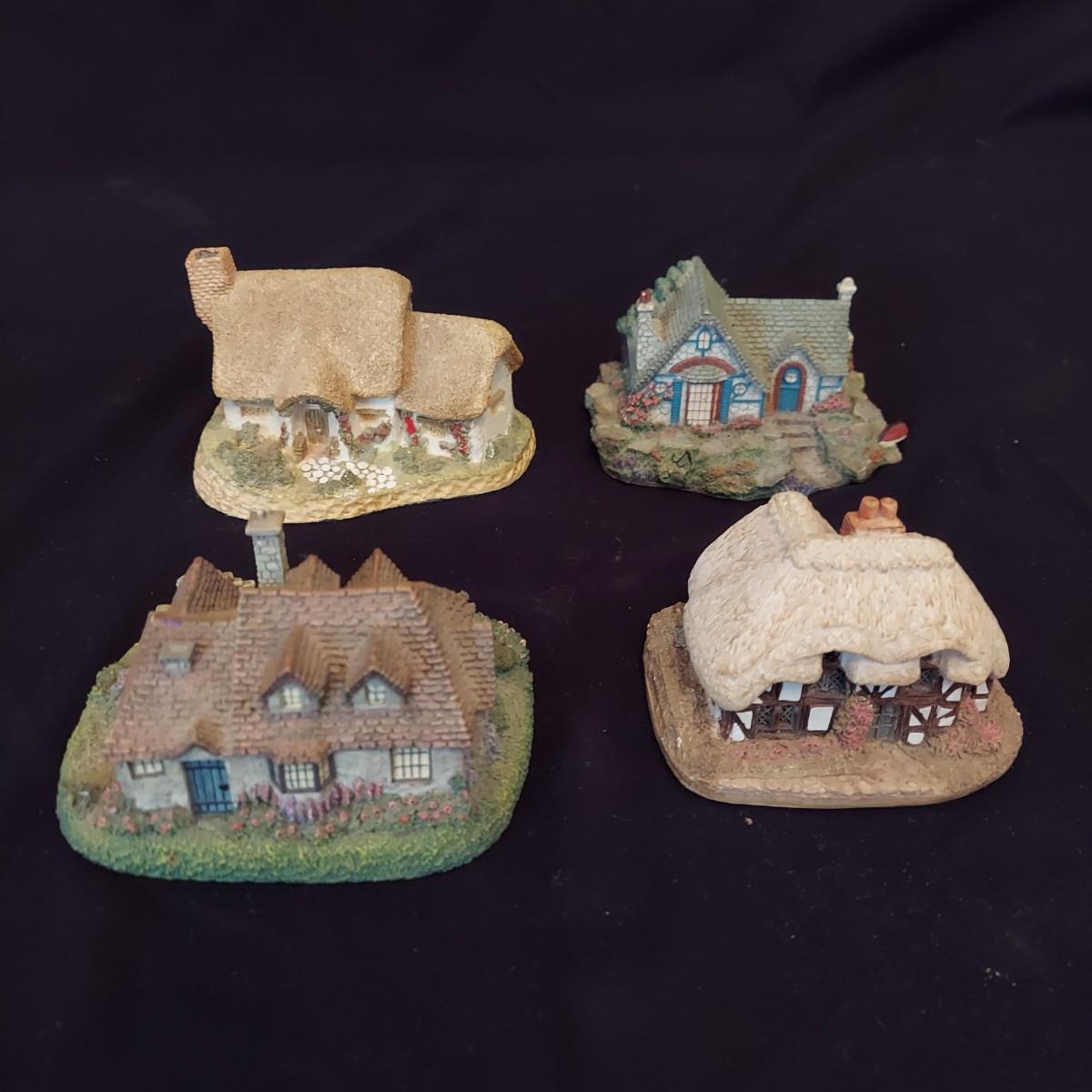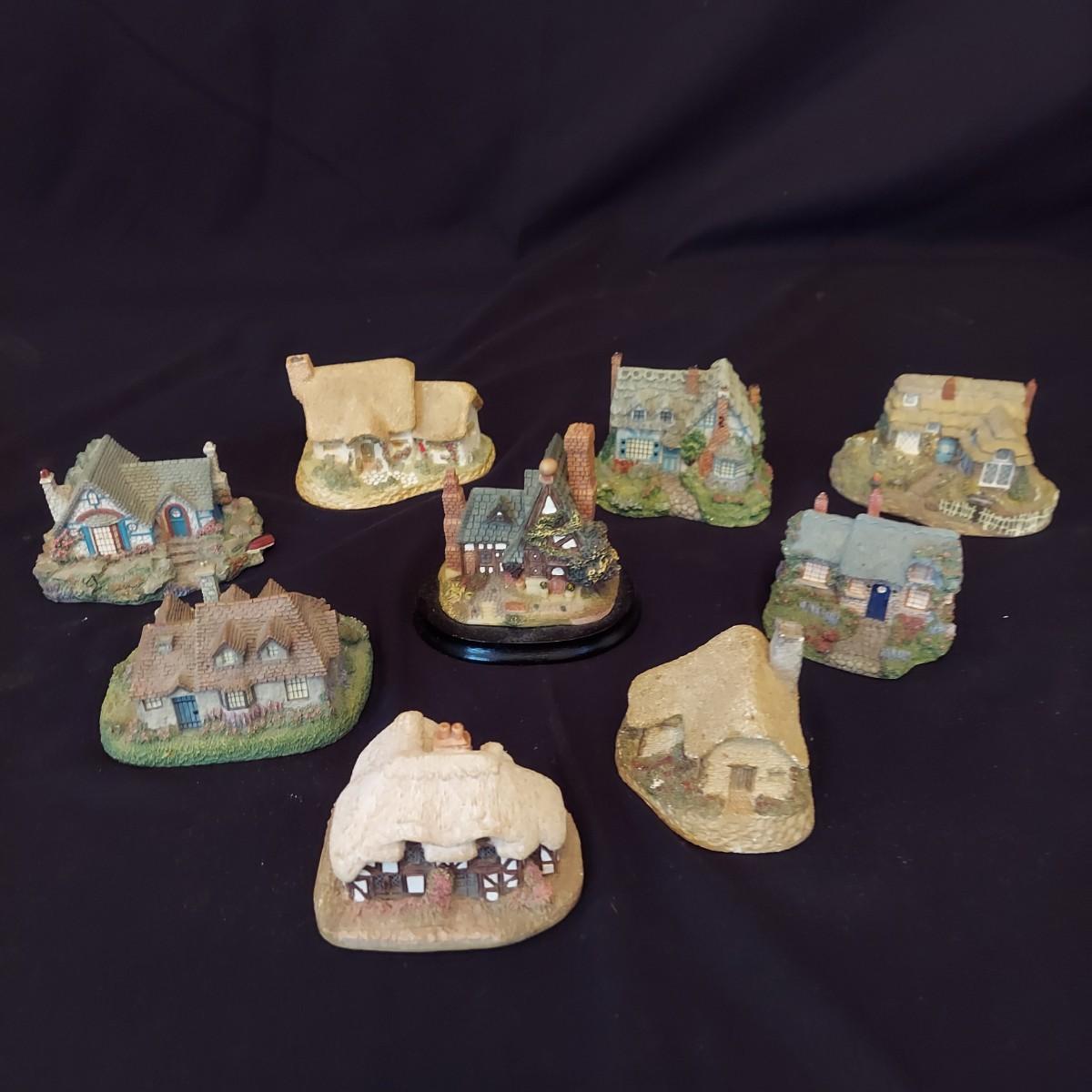 Six cottage figurines from Thomas Kinkade's Candlelight Cottages collection. Varying sizes around 3-4". Dated 1993 and 1994. Two pieces by David Winter. One piece by Lilliput Lane. One unmarked piece on wooden base. Shipping available. Shipping can be costly. We suggest contacting our preferred local shipping provider, Postage Express, with dimensions and getting an estimate before bidding: (828) 670-5501 or postageexpress@yahoo.com.