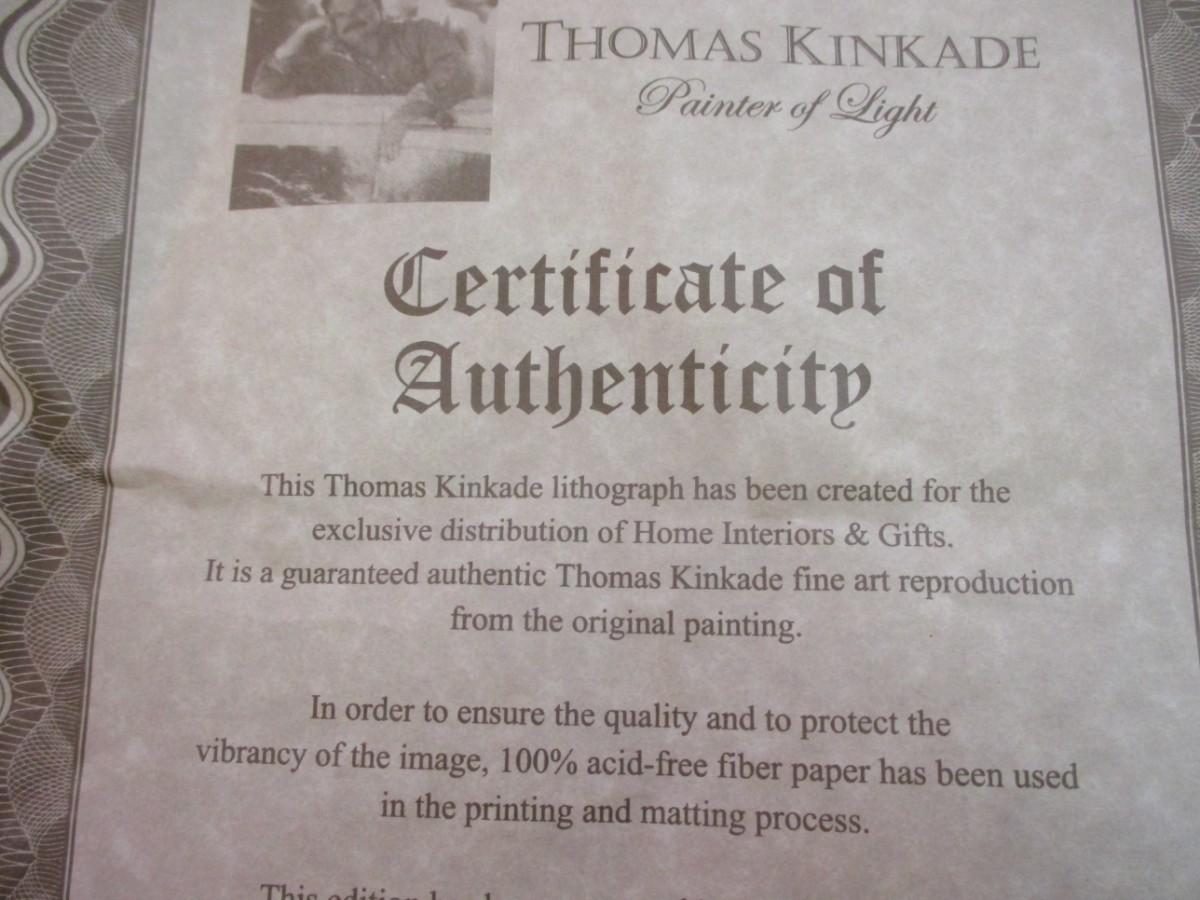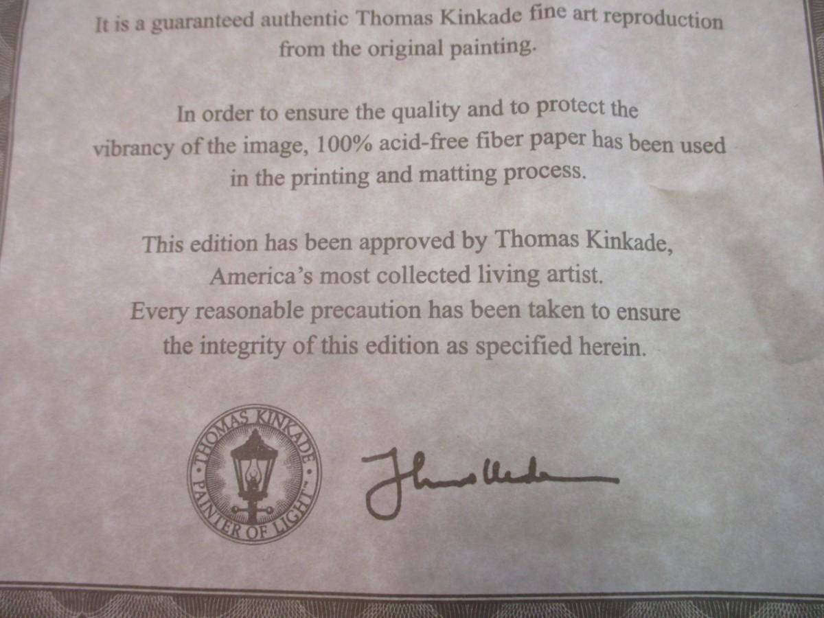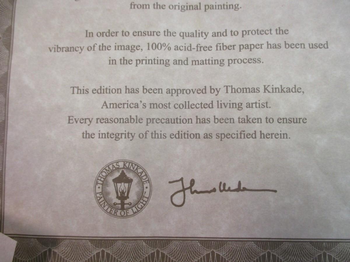 Thomas Kinkade Creekside Trail & Petals Of Hope Print COA's On The Back