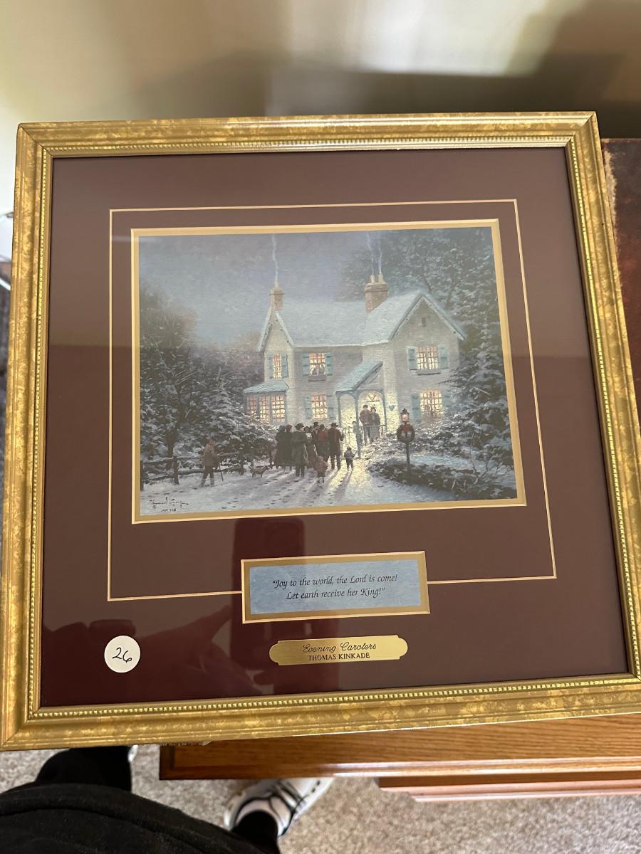 Thomas Kinkade - Evening Carolers - Framed 14x14" Accent Print w/ COA Christmas