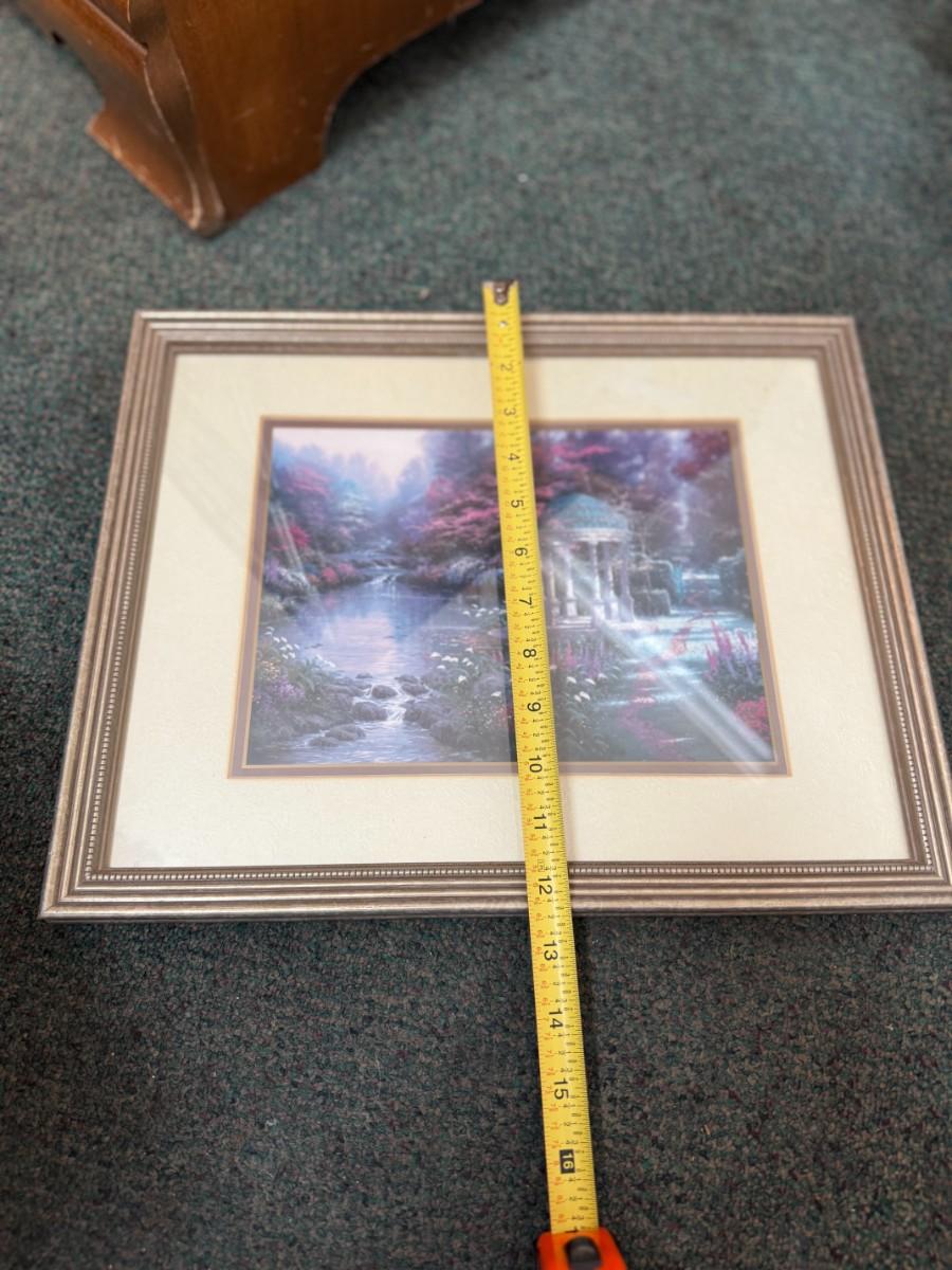 A beautiful framed and matted Thomas Kinkade print capturing the essence of a quaint chapel, perfect for collectors and art lovers.