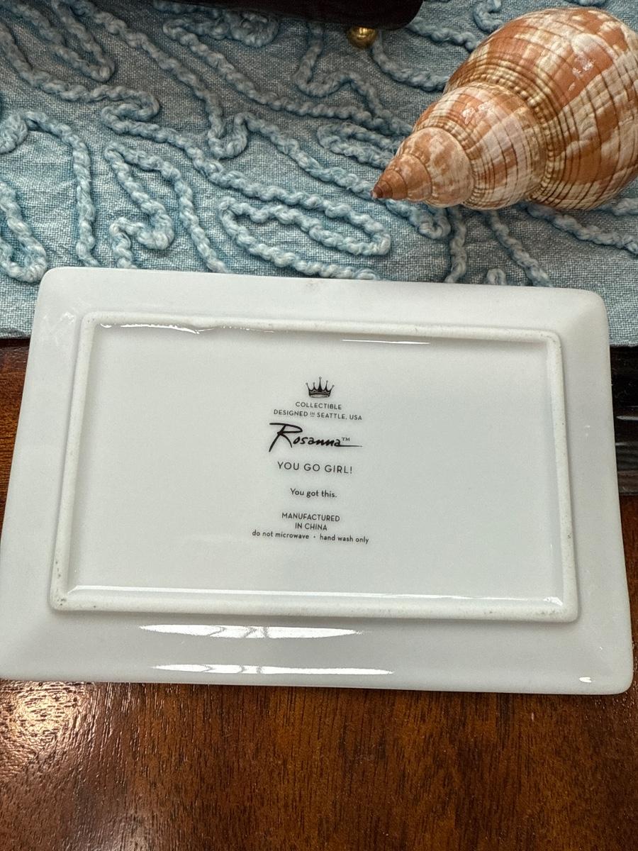 Decorative items including Clay Works by Blue Sky, ashtray, paper weights and coasters. Gorgeous faux succulent planter