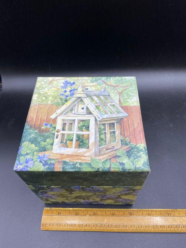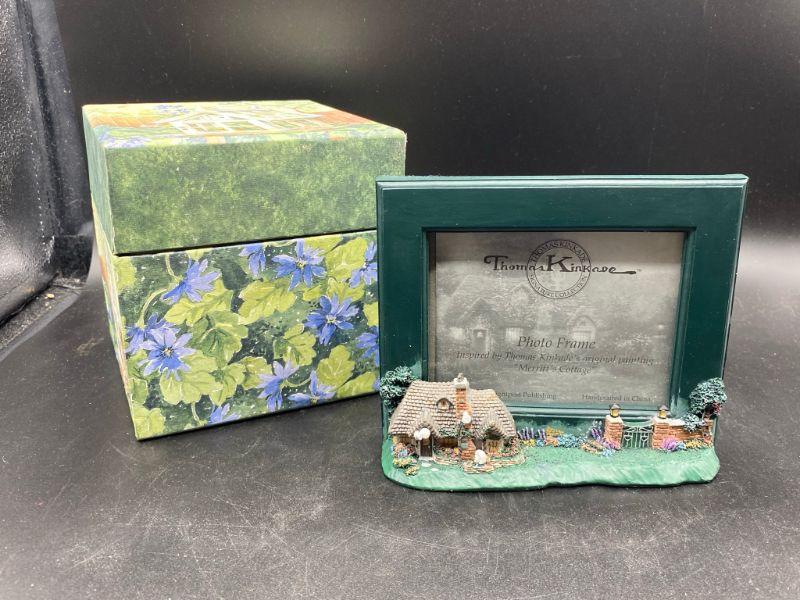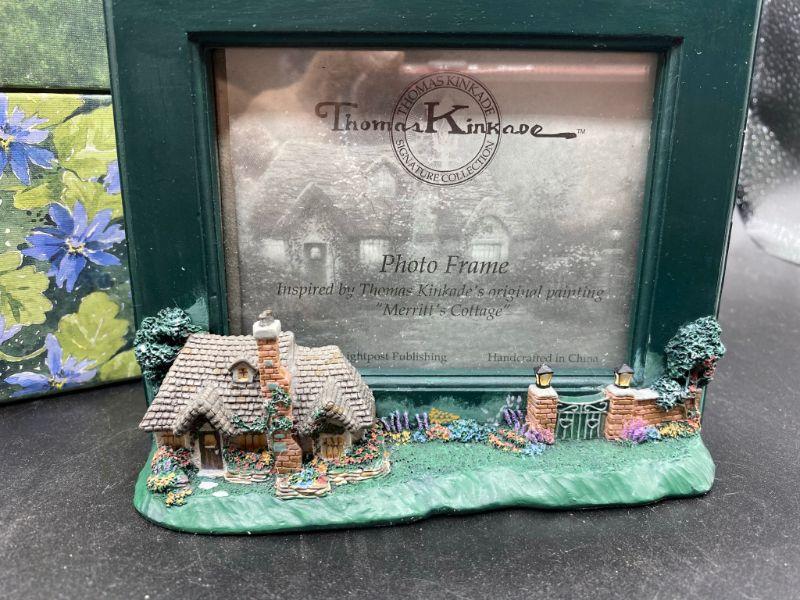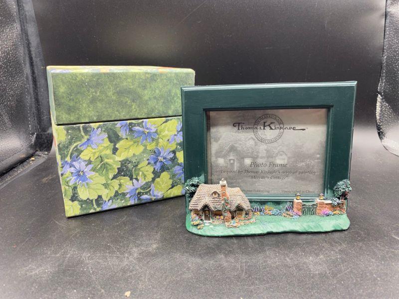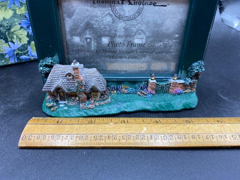 Thomas Kinkade decorative picture frame. Inspired from one of his paintings features a small cottage. Decorative storage box is kleenex box size.