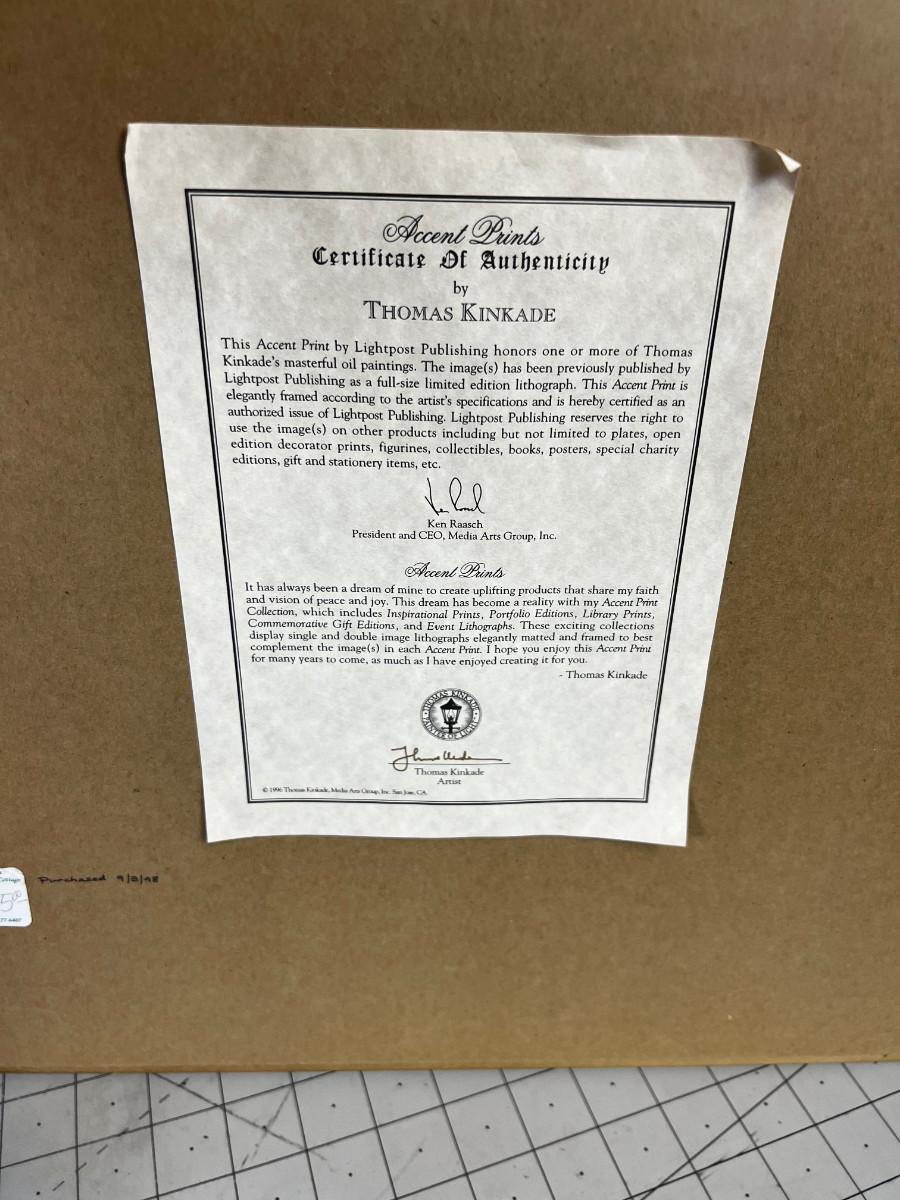 Thomas Kinkade Picture "Beside Still Waters" COY included.  Print Framed. Lovely